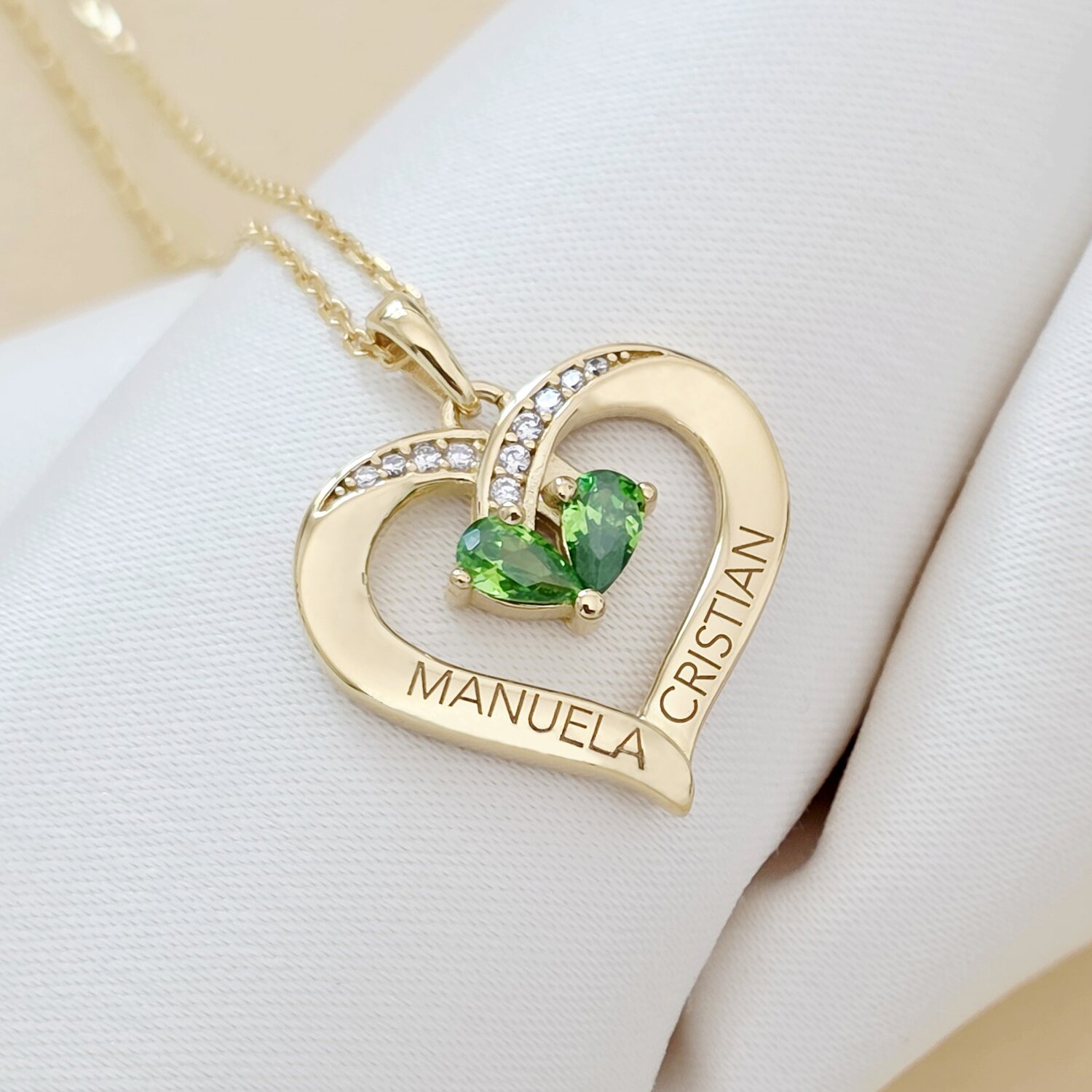 Lantisor Inima cu Poveste - 2 nume si Cristale Zirconia - Argint 925 placat cu Aur 18K