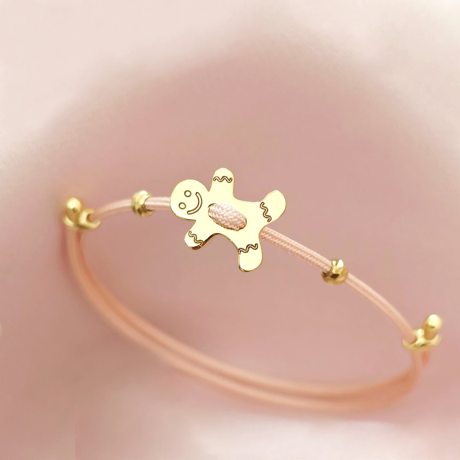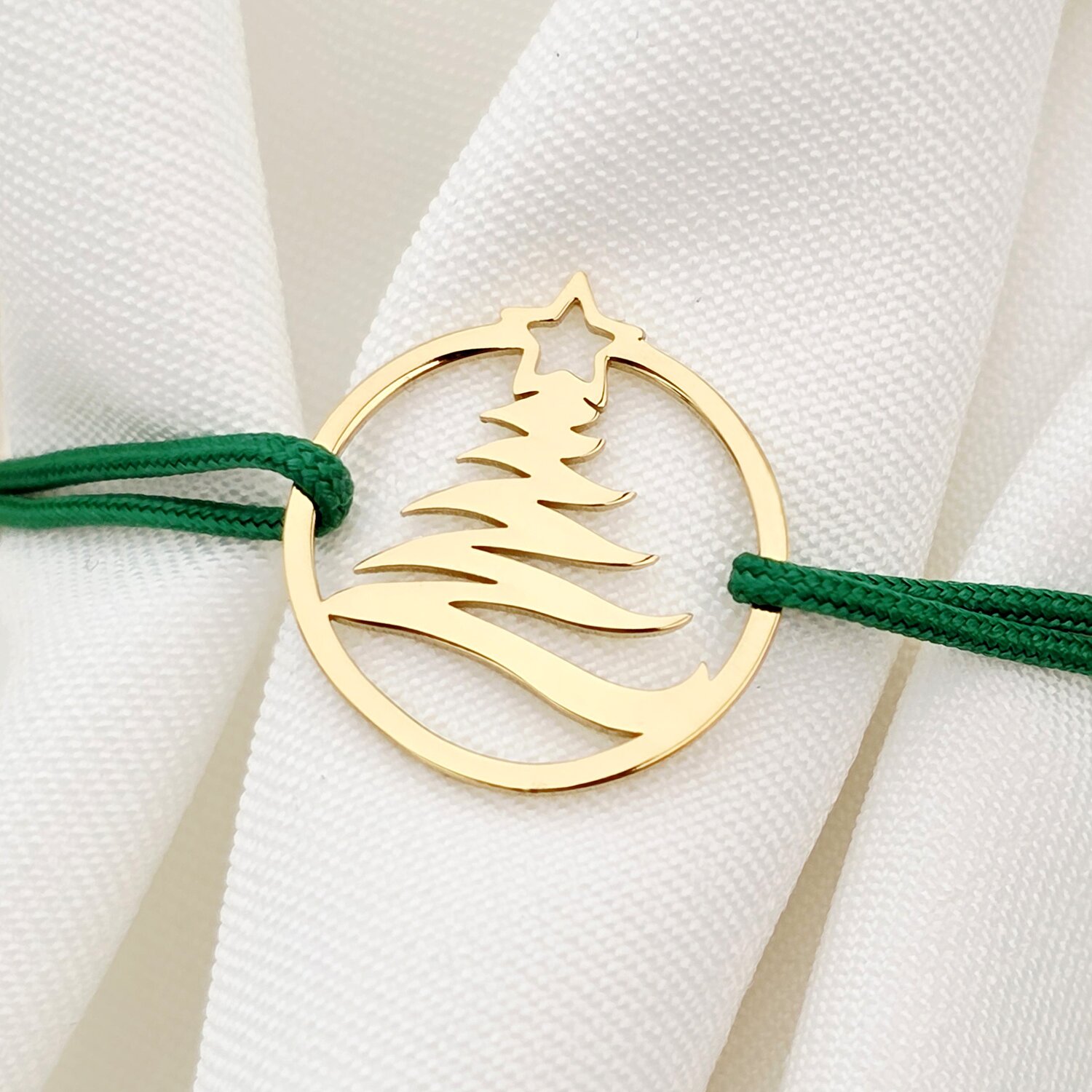 Bratara festiva - Disc si bradut decupat - Argint 925 placat cu Aur Galben 18K - Snur reglabil