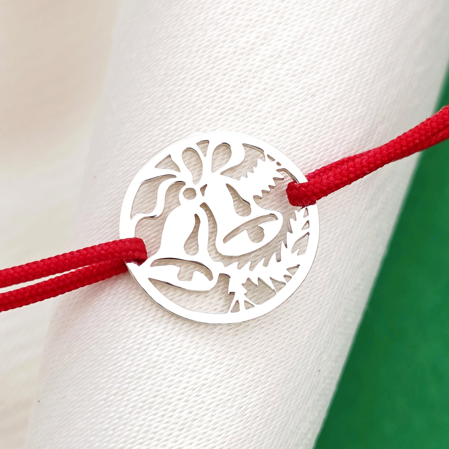 Bratara festiva - Disc si clopotel decupat - Argint 925 - Snur reglabil