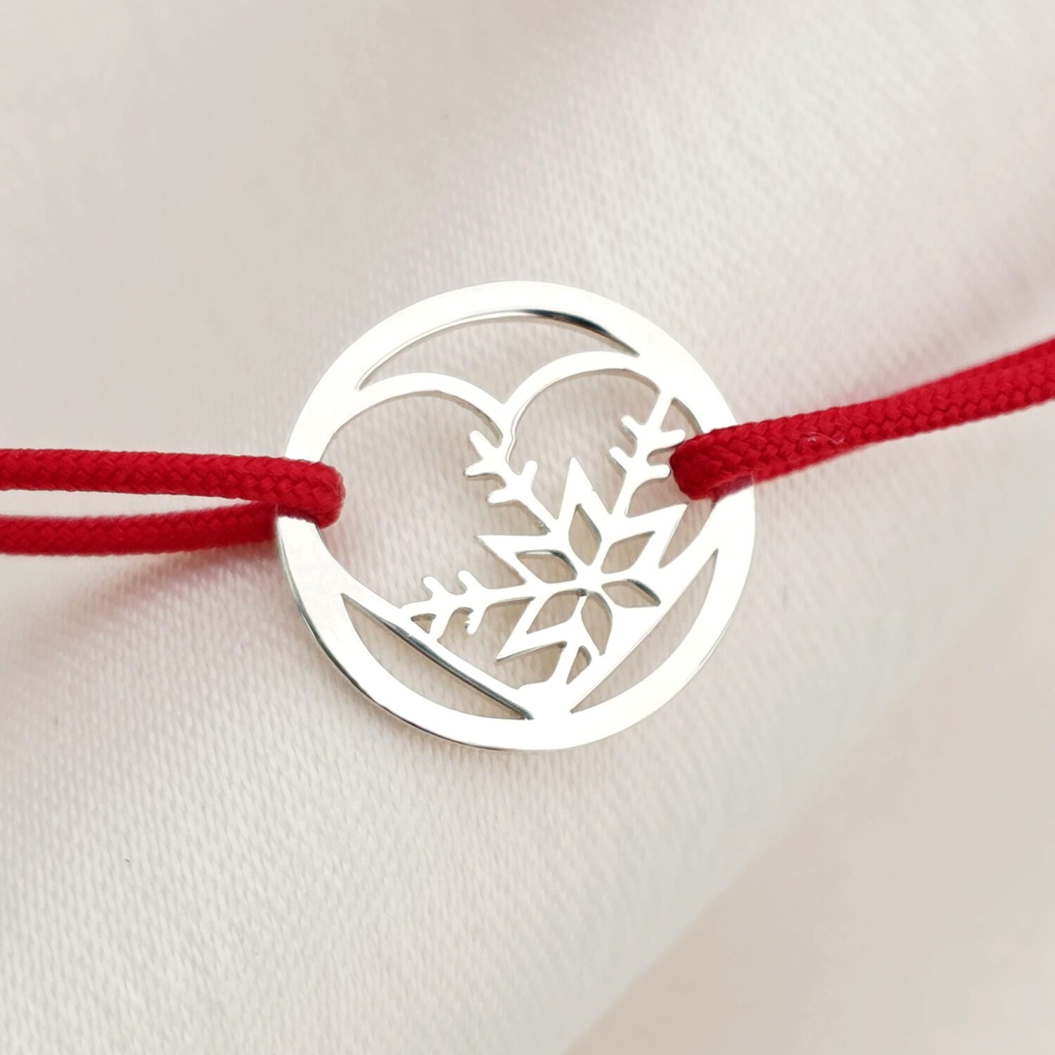 Bratara festiva - Disc cu fulg si initiala personalizata - Argint 925 - Snur reglabil