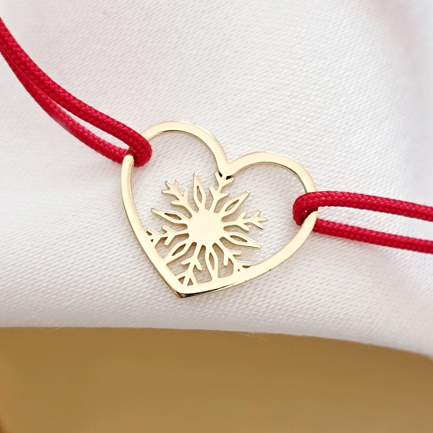 Bratara festiva - Inima si fulg decupat - Argint 925 placat cu Aur Galben 18K - Snur reglabil
