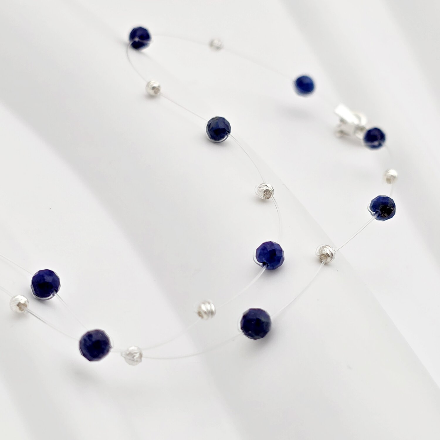 Choker Drop cu pietre Lapis Lazuli si bilute din Argint 925