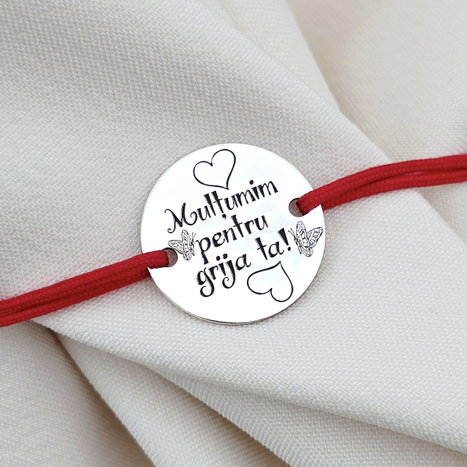 Bratara multumim pentru grija ta - Argint 925 - Snur reglabil