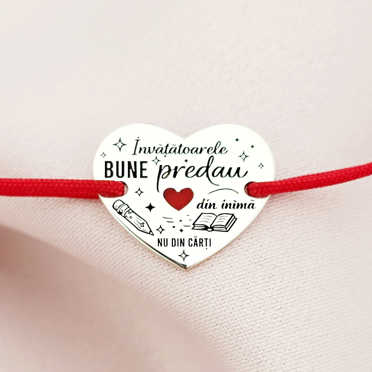 Bratara personalizata - Pandantiv inima Invatatoare - email rosu - Argint 925 - Snur reglabil