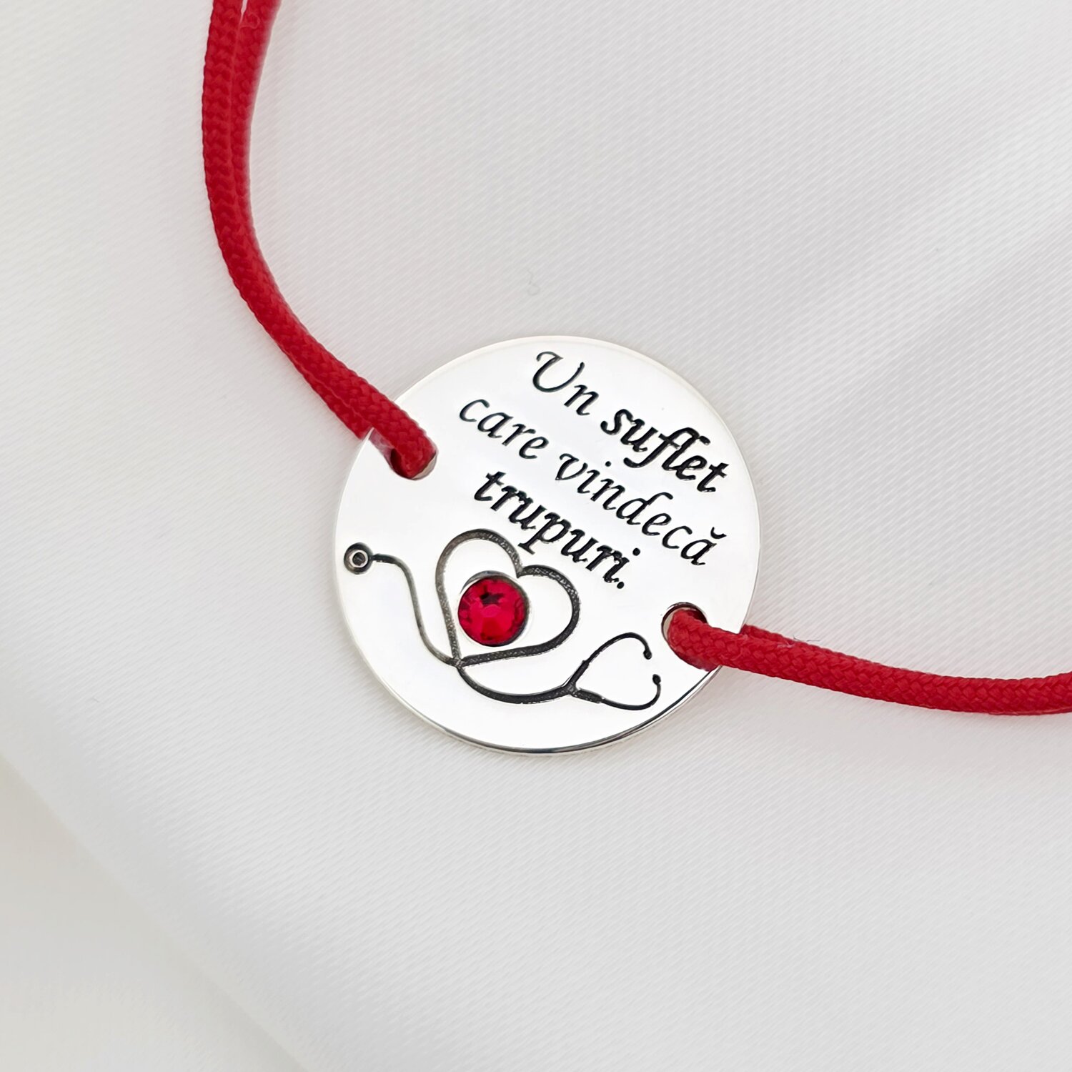 Bratara diriginta care ne-a format sufletele - Argint 925 si email rosu- Snur reglabil