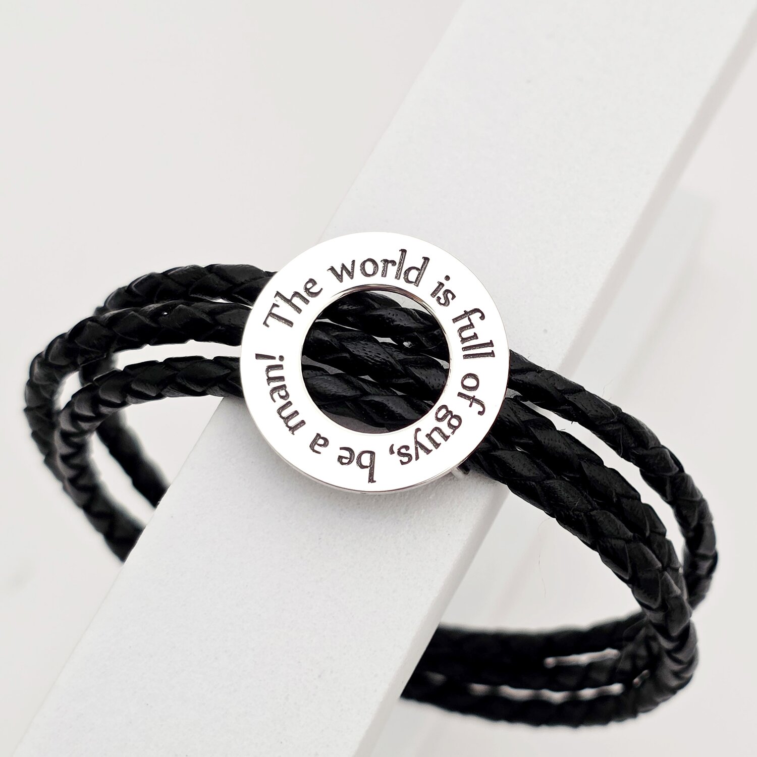 Bratara Familia Mea - pentru barbat - 4 membri - Argint 925 si Piele lata