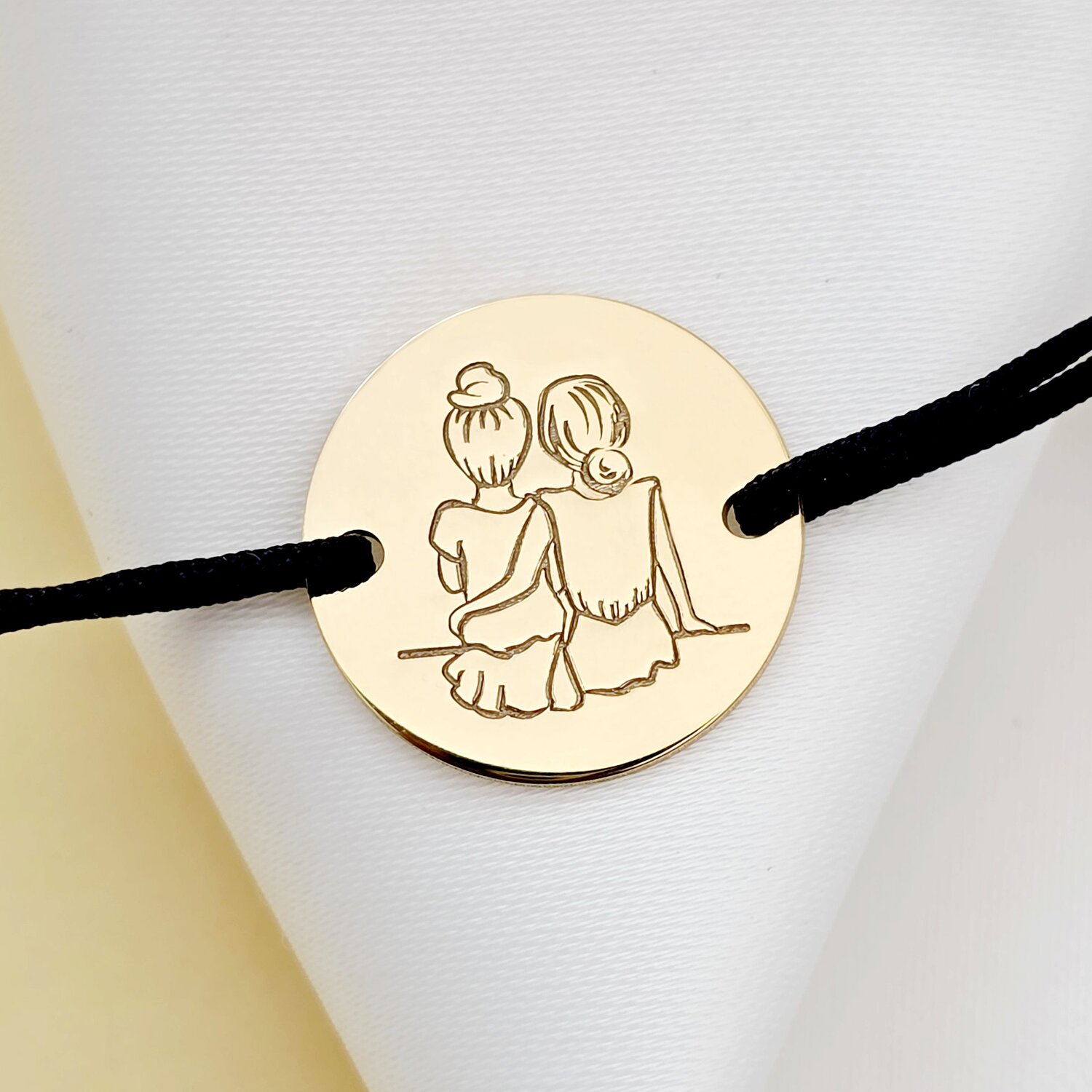 Bratara 2 surori / prietene - Argint 925 placat cu Aur galben 18k, snur reglabil
