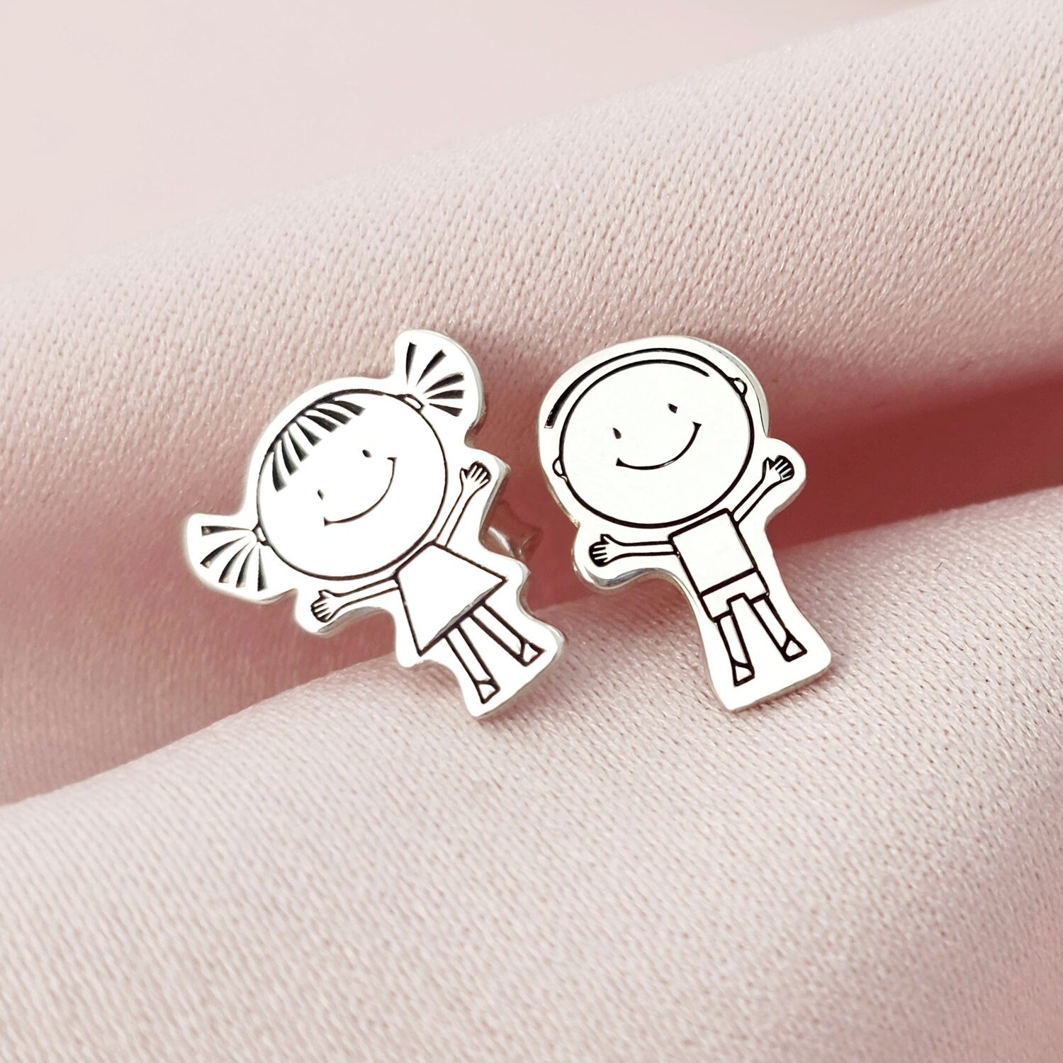 Cercei Fetita si Baiat siluete laterale - Argint 925