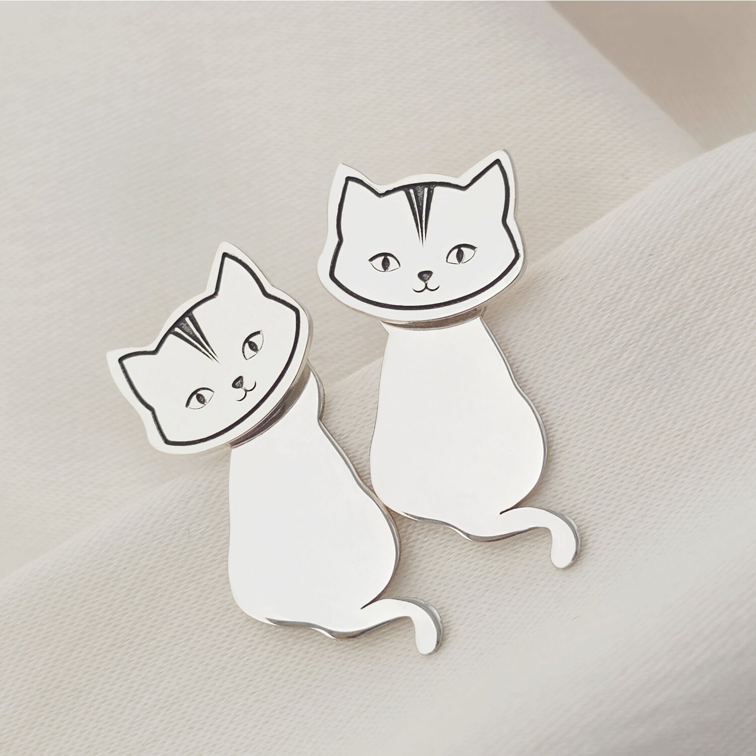 Cercei pisica Hang in there Kitten cu codita lunga - Argint 925