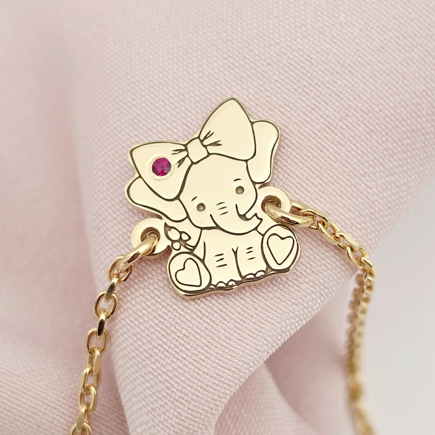 Bratara elefantel - cu Piatra pretioasa - Argint 925 placat cu Aur Galben 18K - Cu lantisor fata/baiat