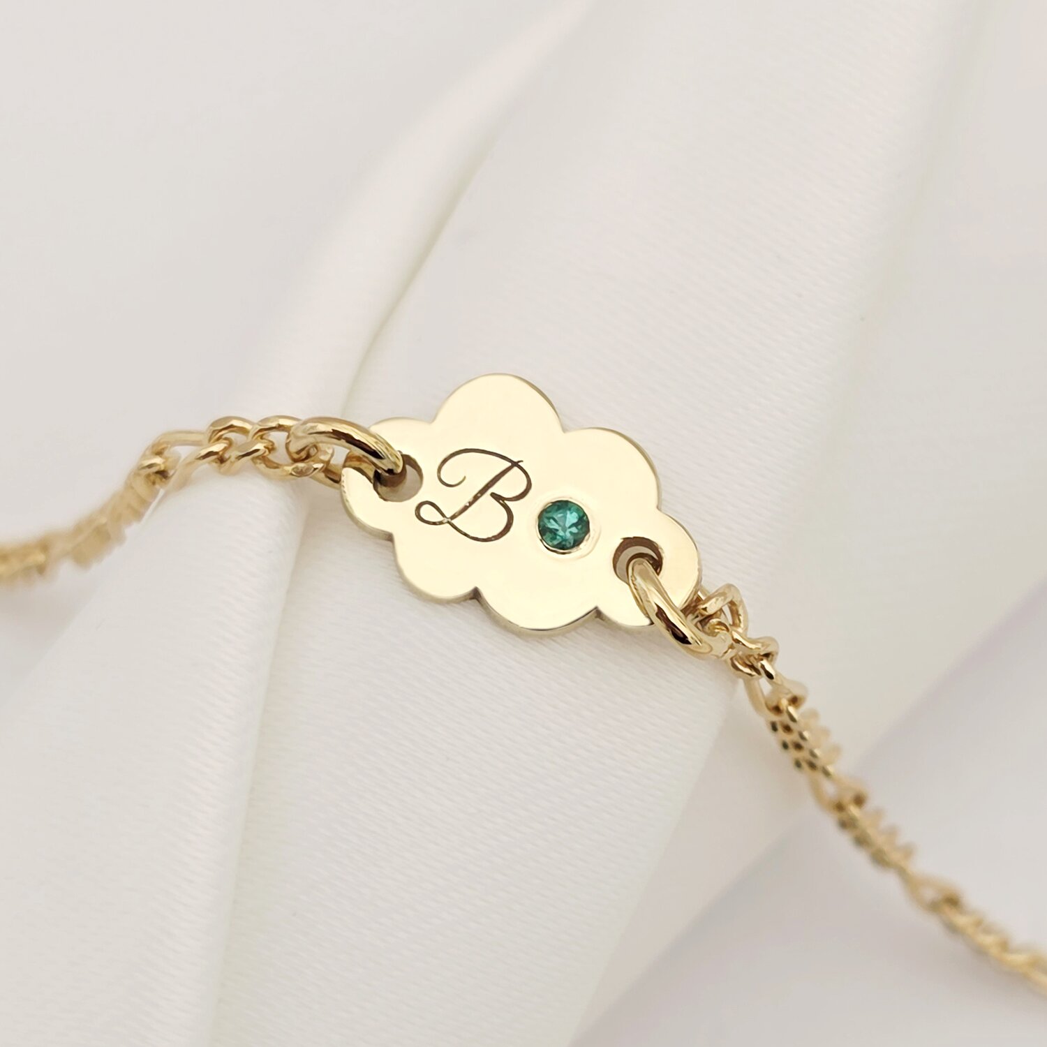 Bratara norisor - persoalizata cu initiala si Piatra pretioasa - Argint 925 placat cu Aur Galben 18K - Cu lantisor fata/baiat