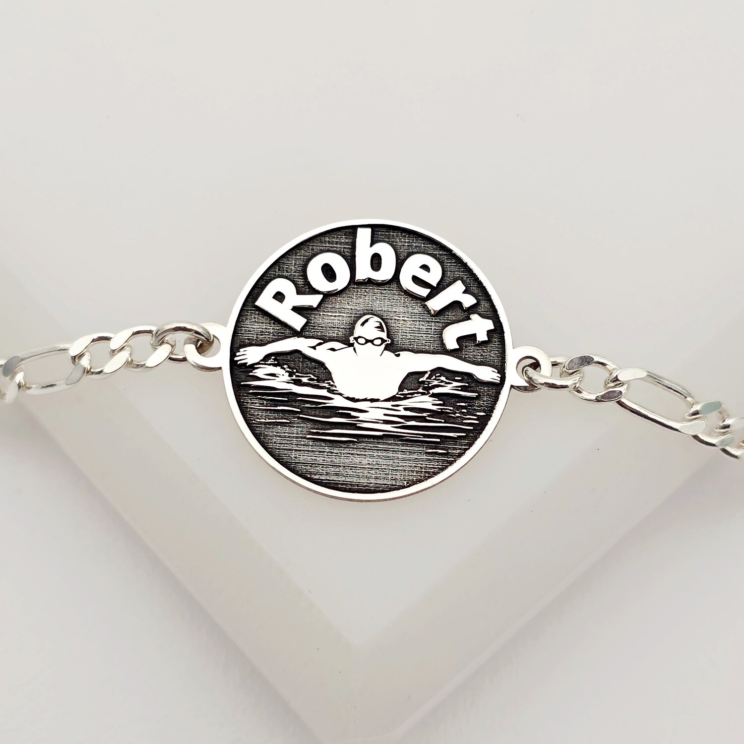Brățară placuta personalizata cu nume de baiat – Diamant natural - Argint 925 placat cu Aur Galben 18K - Cu lantisor fata/baiat