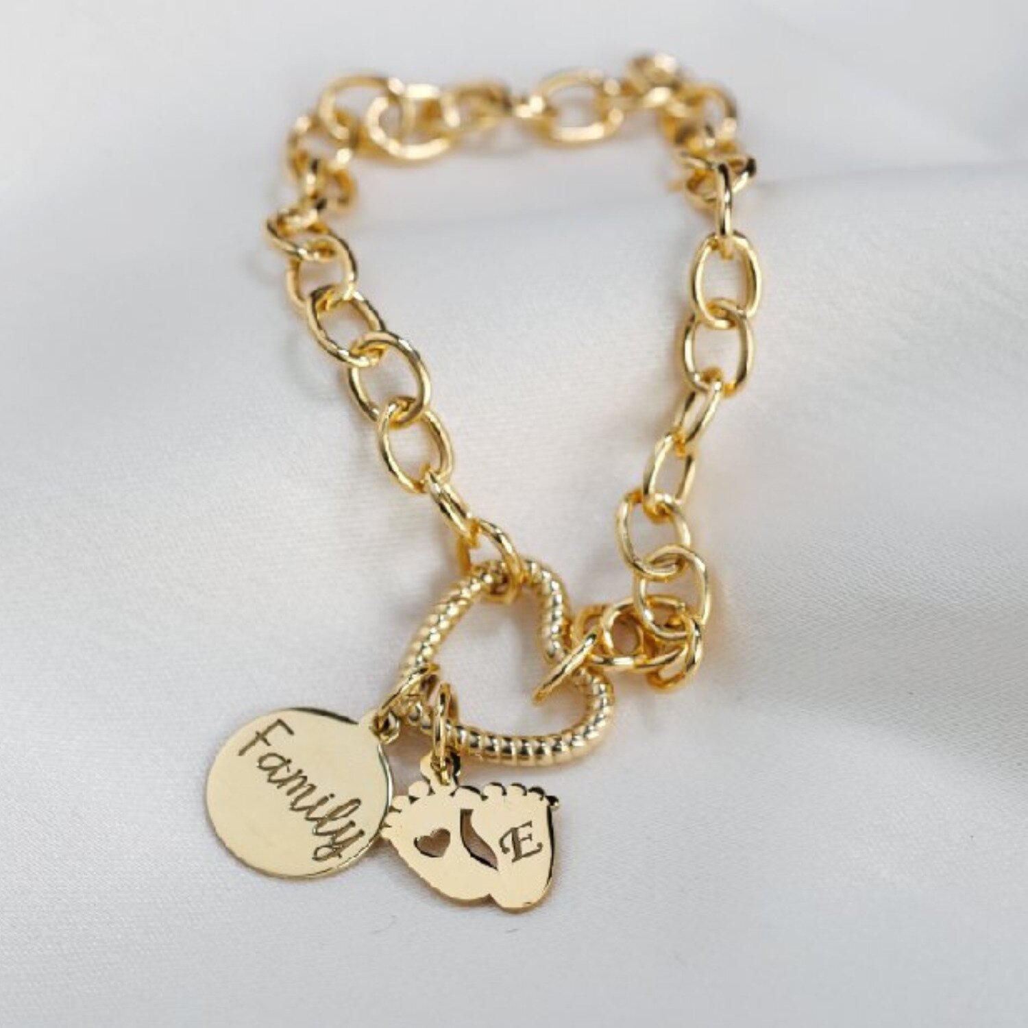 Bratara picioruse - personalizate cu nume si Piatra pretioasa - Argint 925 placat cu Aur Galben 18K - Cu lantisor fata/baiat