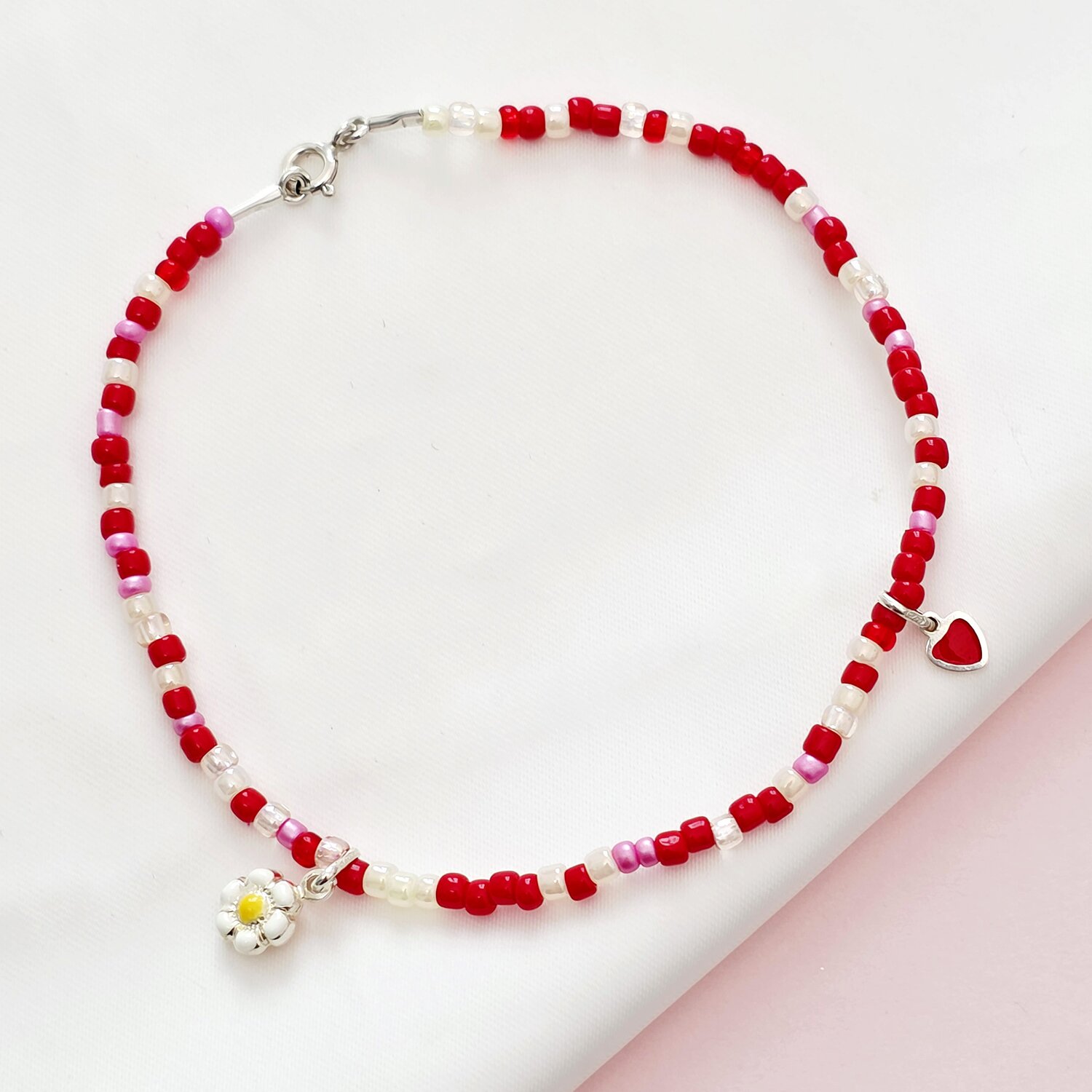 Bratara de picior – 2 Charmuri colorate din Argint 925 - Model cu bilute rosii