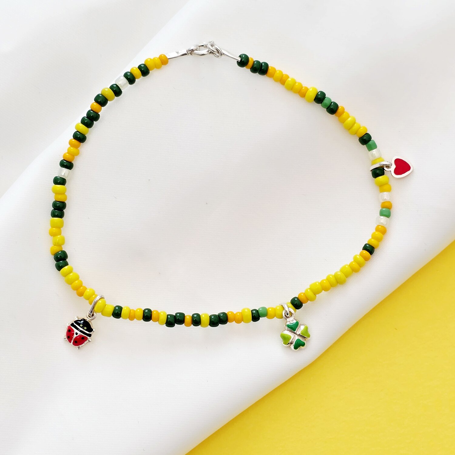 Bratara de picior – 3 Charmuri colorate din Argint 925 - Model cu bilute galbene