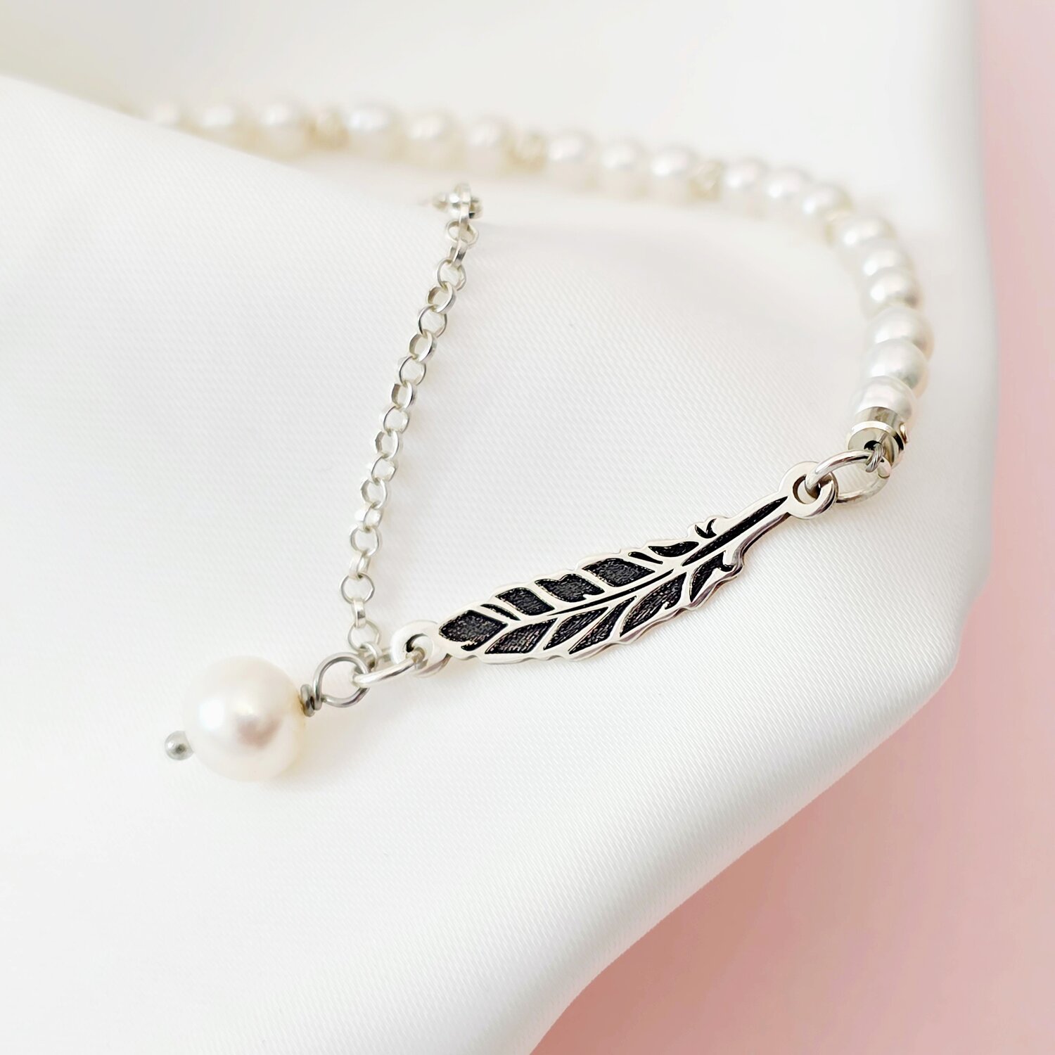 Bratara de picior – Pana boema – Argint 925 – Model cu lantisor & perle si bilute