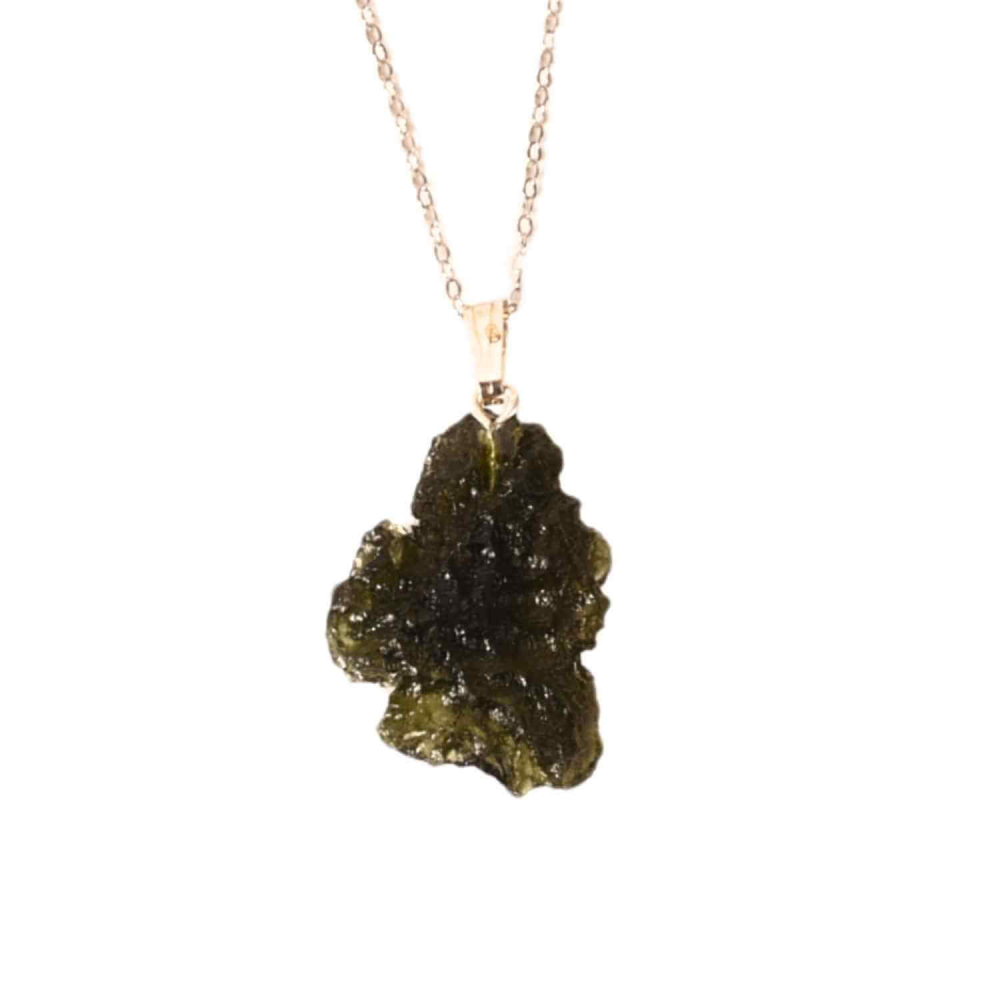 Colier Argint 925 cu Moldavit natural brut 2.6 g , sustinere simbolica pentru schimbare si introspectie