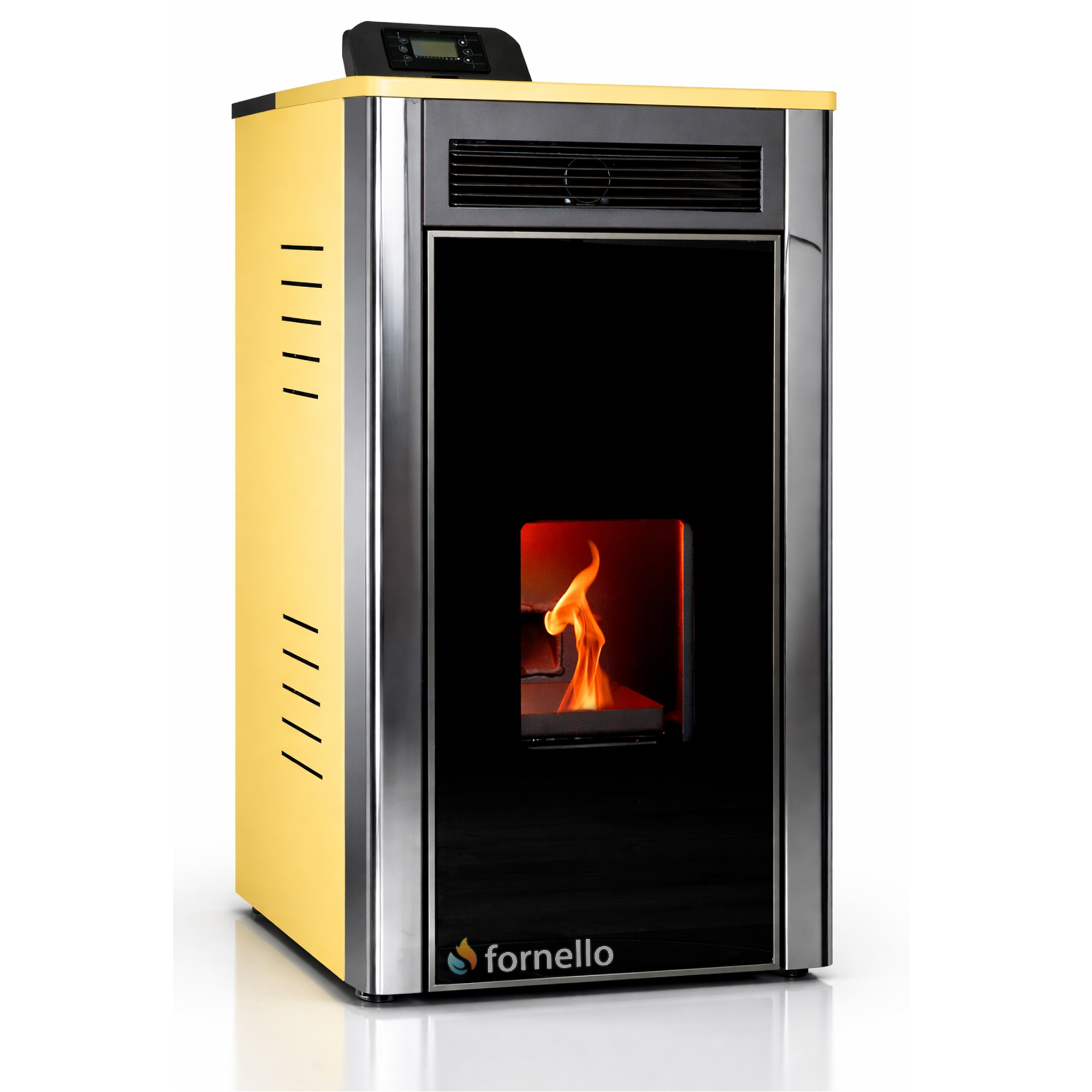 Termosemineu pe peleti Fornello Pellet King 35 kw complet echipata pentru incalzire, pompa , vas de expansiune ,supapa de siguranta, automatizare , tiraj fortat, buncar peleti 80 litri, aprindere automata, Clasa energetica A+