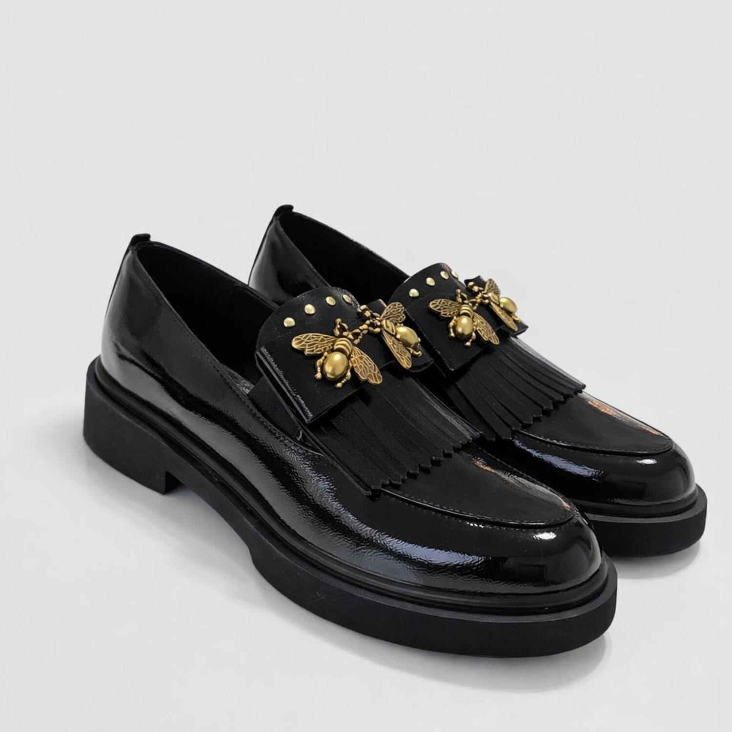 Pantofi casual Piele Naturala Negri naplac cu accesorii Kasia