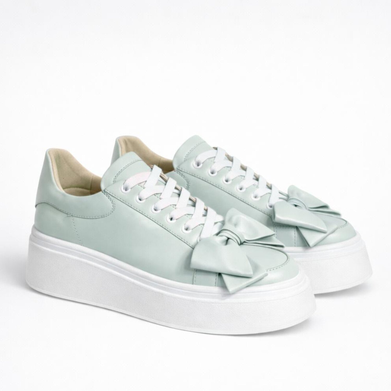Balerini Piele Naturala Verde ou rata cu funda Alisia