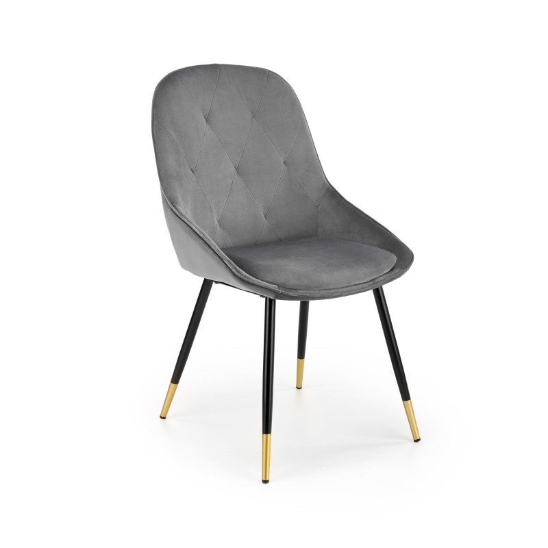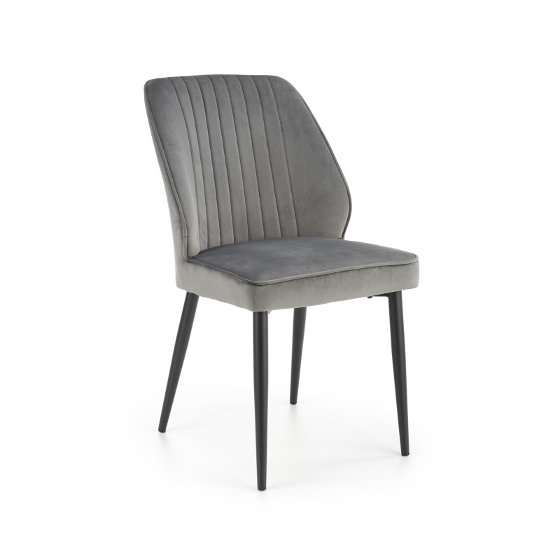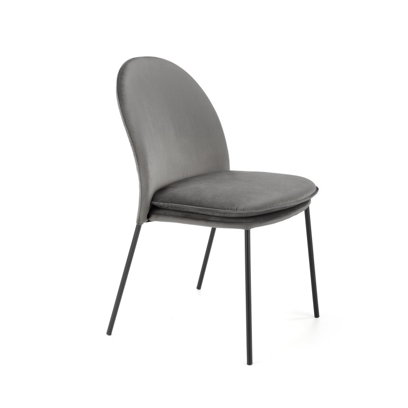 Scaun modern Ava, tapiterie catifea gri, cadru otel vopsit cu pulbere, 57x54x79x48 cm