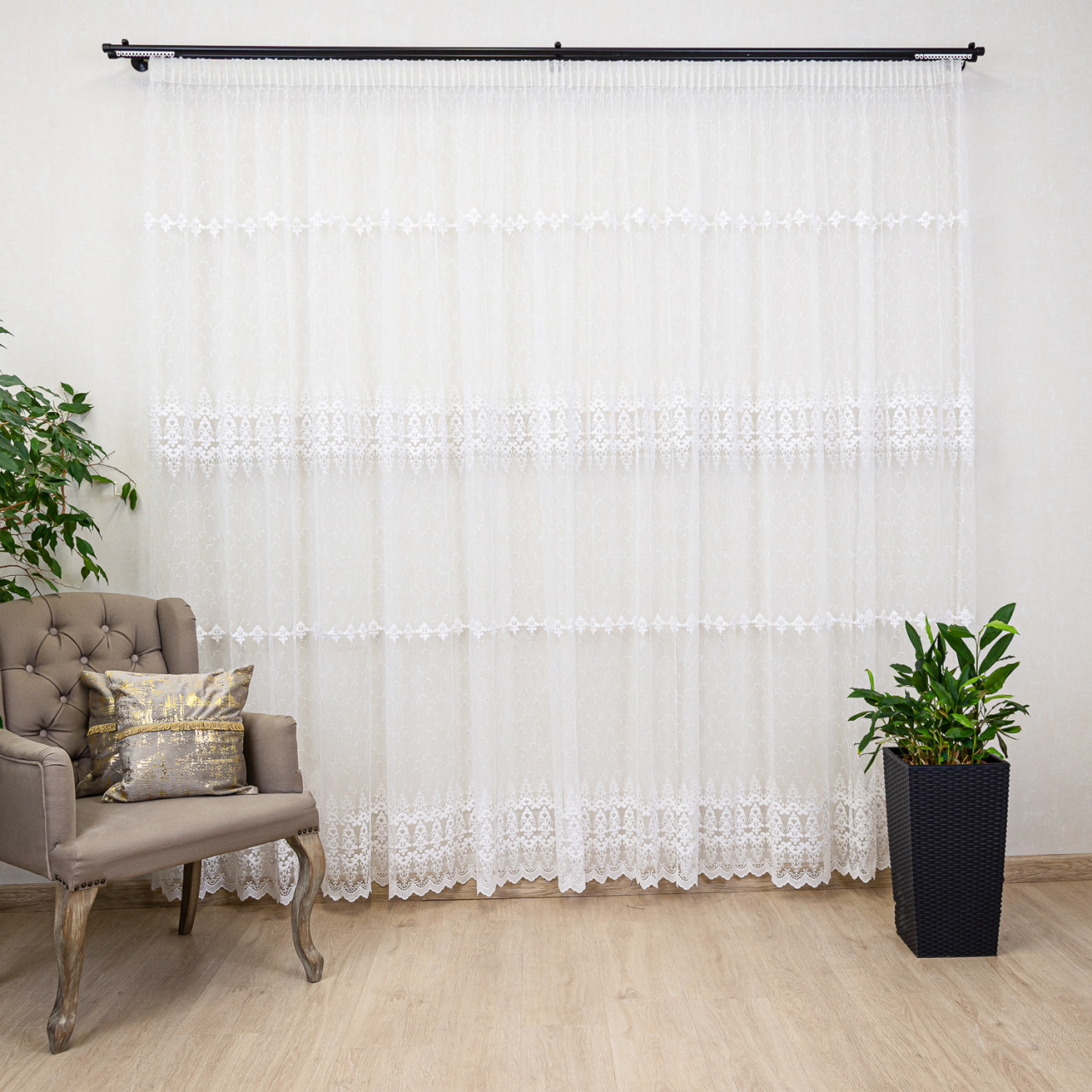 Perdea alba, brodata, nesifonabila Hiko Garden15, cu rejansa