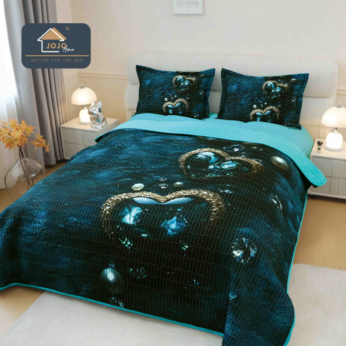 Lenjerie Pat Dublu, Bumbac Finet, 6 Piese, cu Elastic, Pliuri, Volanase si Inimioare Brodate