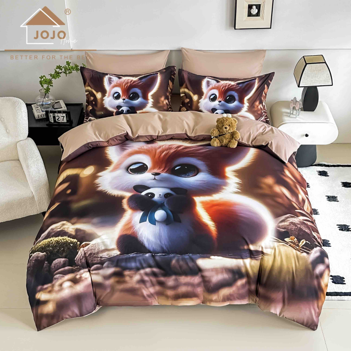 Lenjerie de Pat 140x200 cu Elastic, Imprimeu 5D, 4 Piese