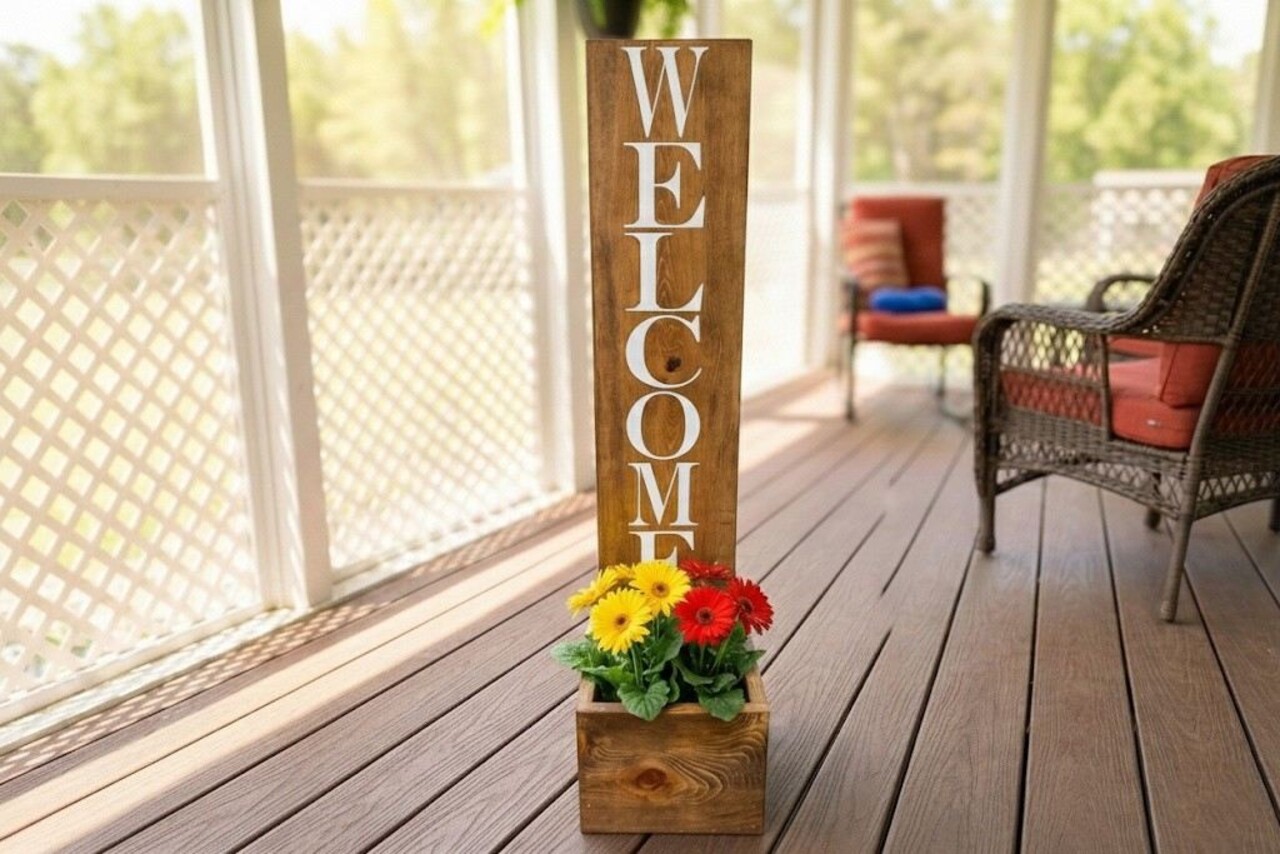 Ghiveci decorativ de grădină, Huhu656, 22x100x18 cm, Maro inchis