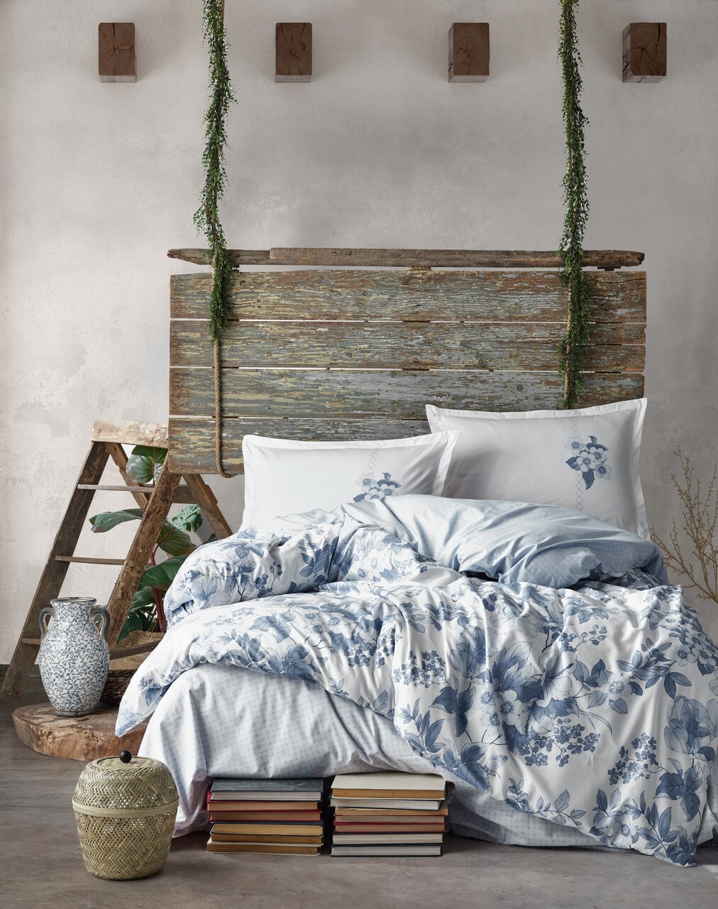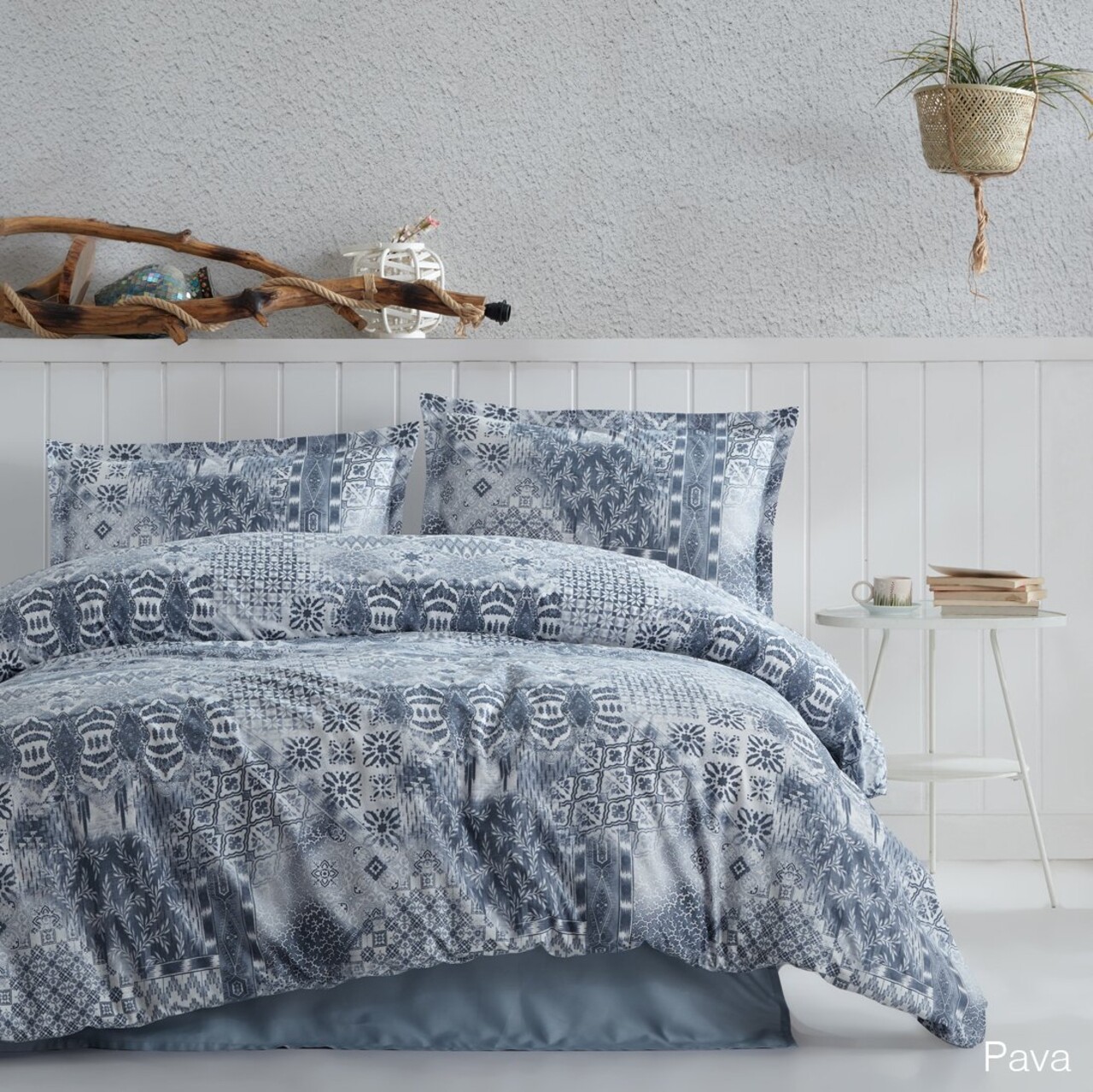Lenjerie de pat dubla Super King (EU) (IT), Lessentiel Maison, Pava v1, Bumbac Ranforce, Albastru/Alb