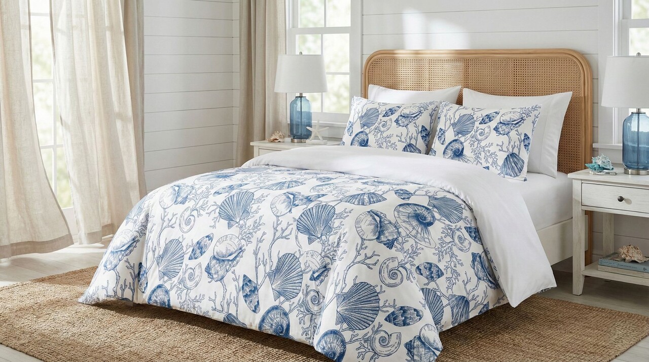 Lenjerie de pat pentru o persoana (DE), 2 piese, Lessentiel Maison, Seashelly, Bumbac;Poliester, Albastru/Alb