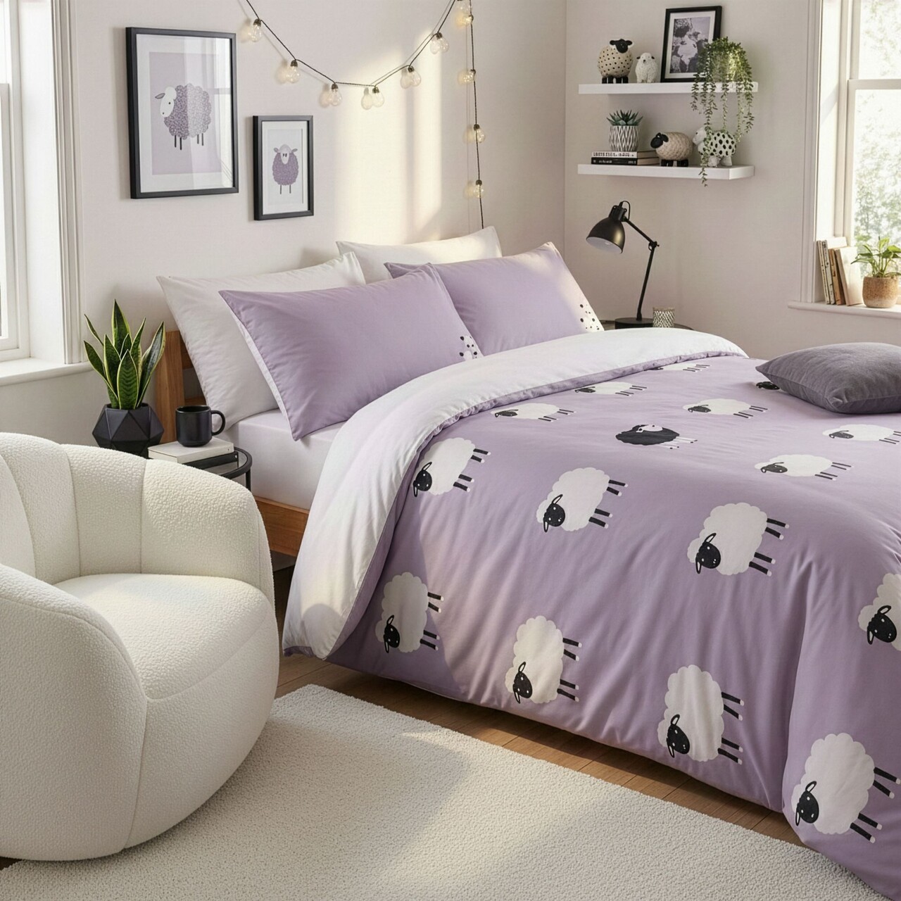 Lenjerie de pat pentru o persoana (DE), 2 piese, Lessentiel Maison, The Black Sheep, Alb