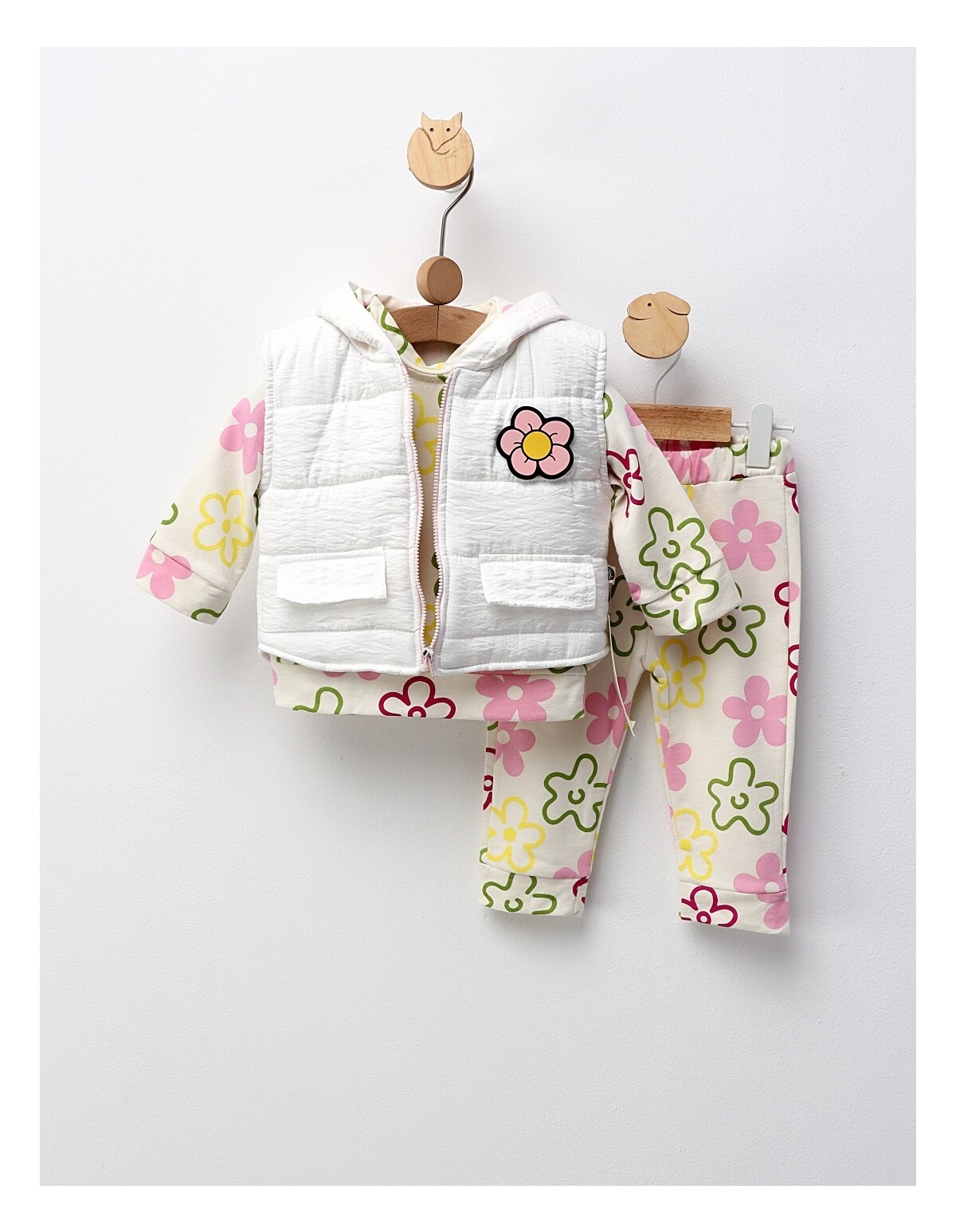 Set 3 piese, cu vesta, All Flowers, alb