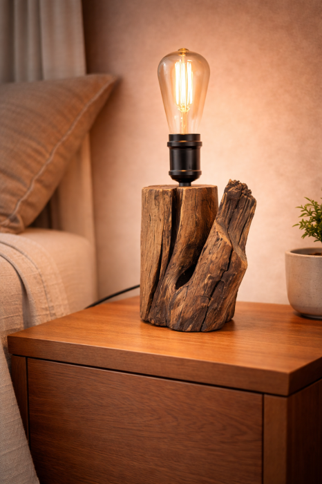 Lampa din stejar masiv - trunchi natural - handmade