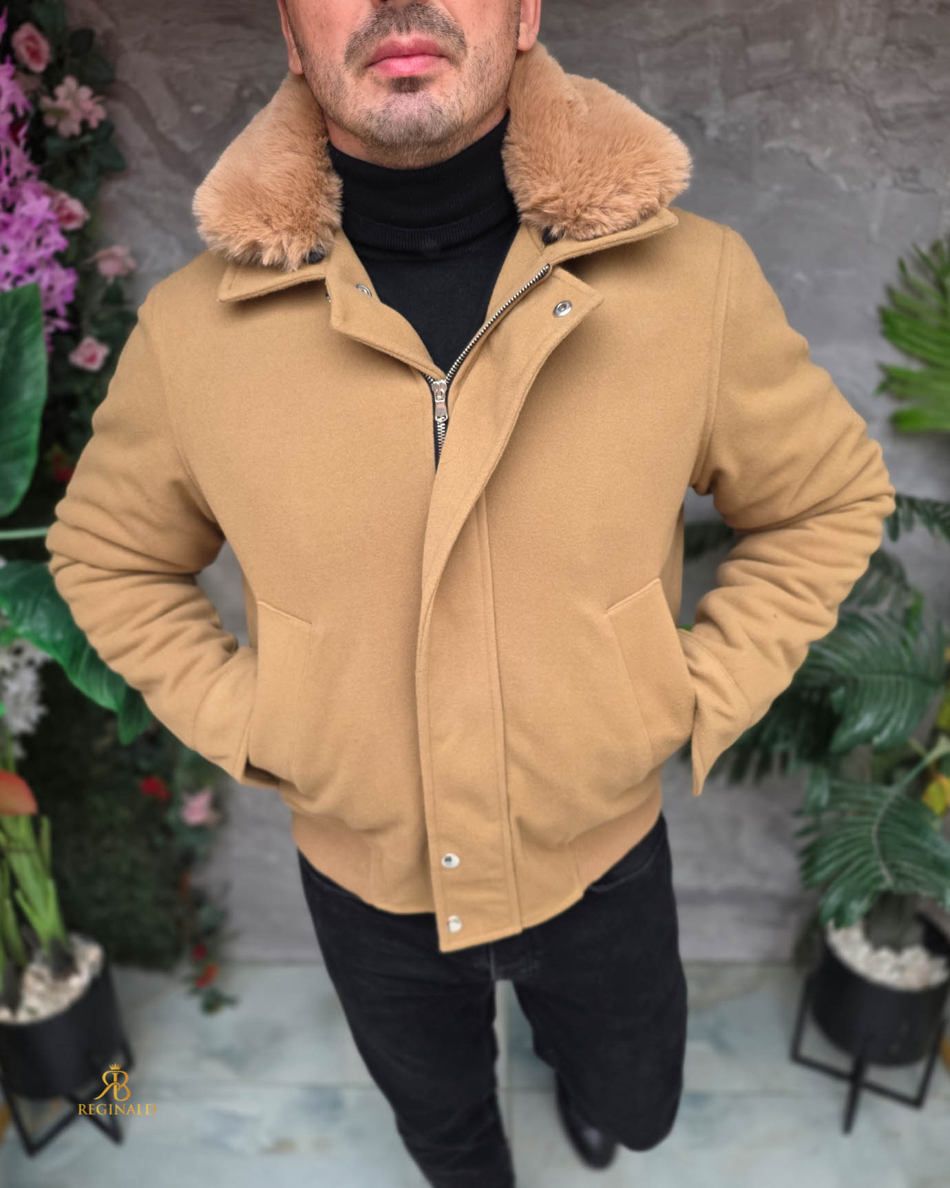 Cojoc bej de barbati, interior imblanit complet, slim-fit- GC906