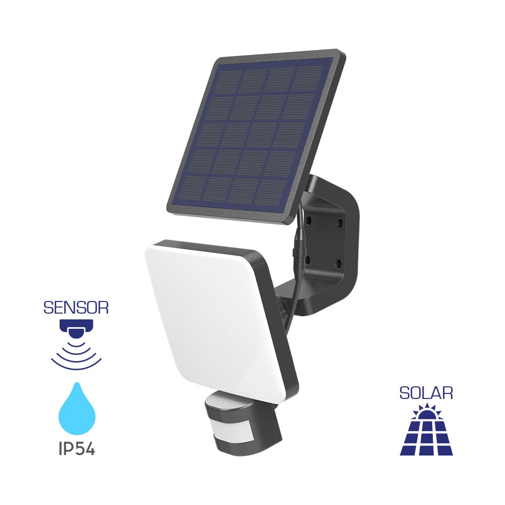 Aplica solara LED cu senzor de miscare, 10W, 1000lm, lumina calda/neutra/rece, IP54, 10h, Braytron