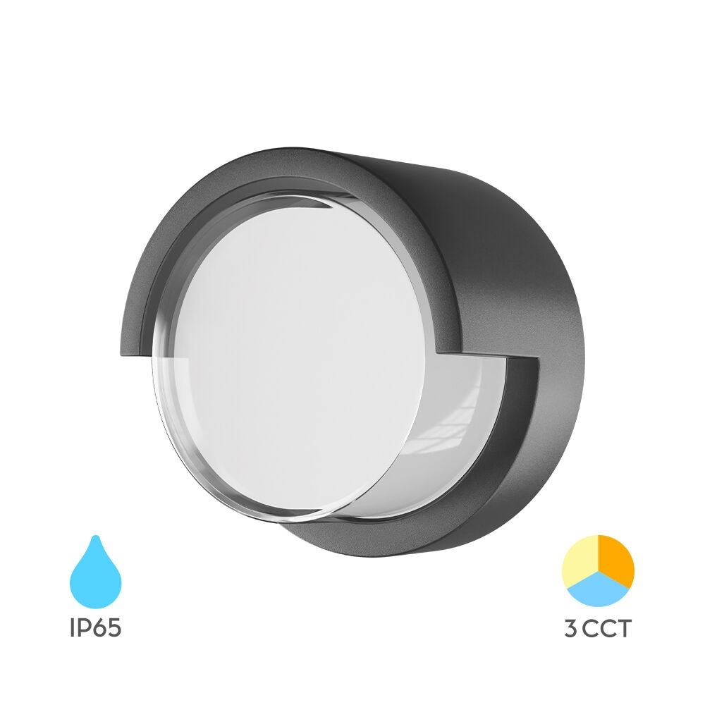 Aplica LED exterior rotunda 15W, 1450lm, lumina calda/neutra/rece, IP65, gri inchis, Braytron
