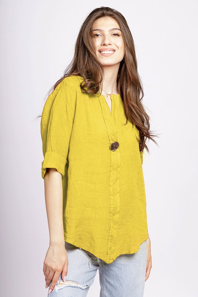 Camasa galbena din in cu nasture metalic decorativ Talie unica