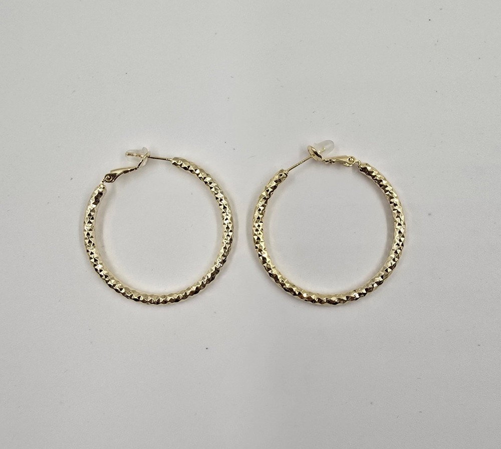 Cercei creole aurii texturate cu efect fatetat si tija din argint 925 - Copie