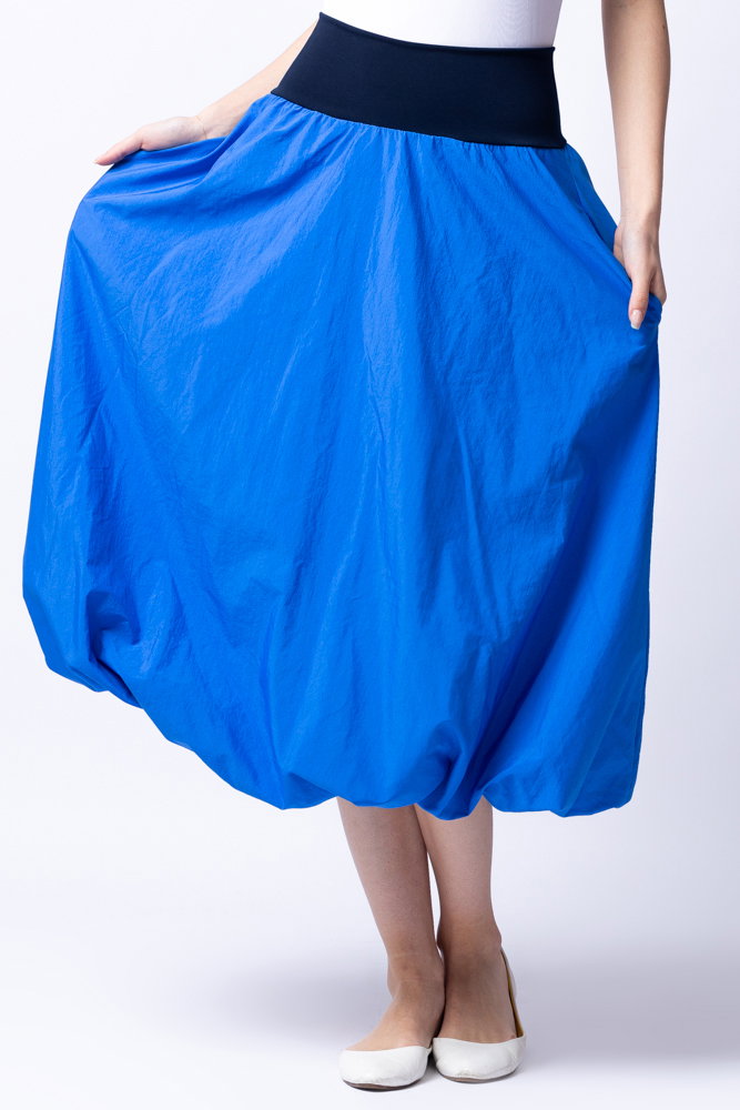 Fusta albastru electric midi, tip lalea, din tafta Talie unica