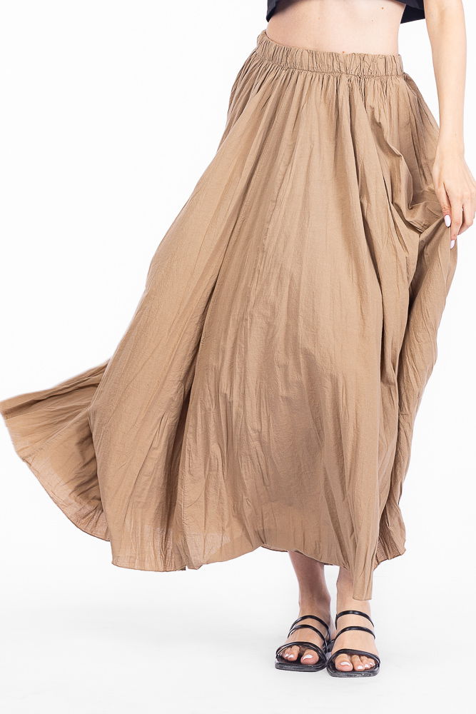 Fusta lunga, ampla, clos, din bumbac creponat, camel Talie unica