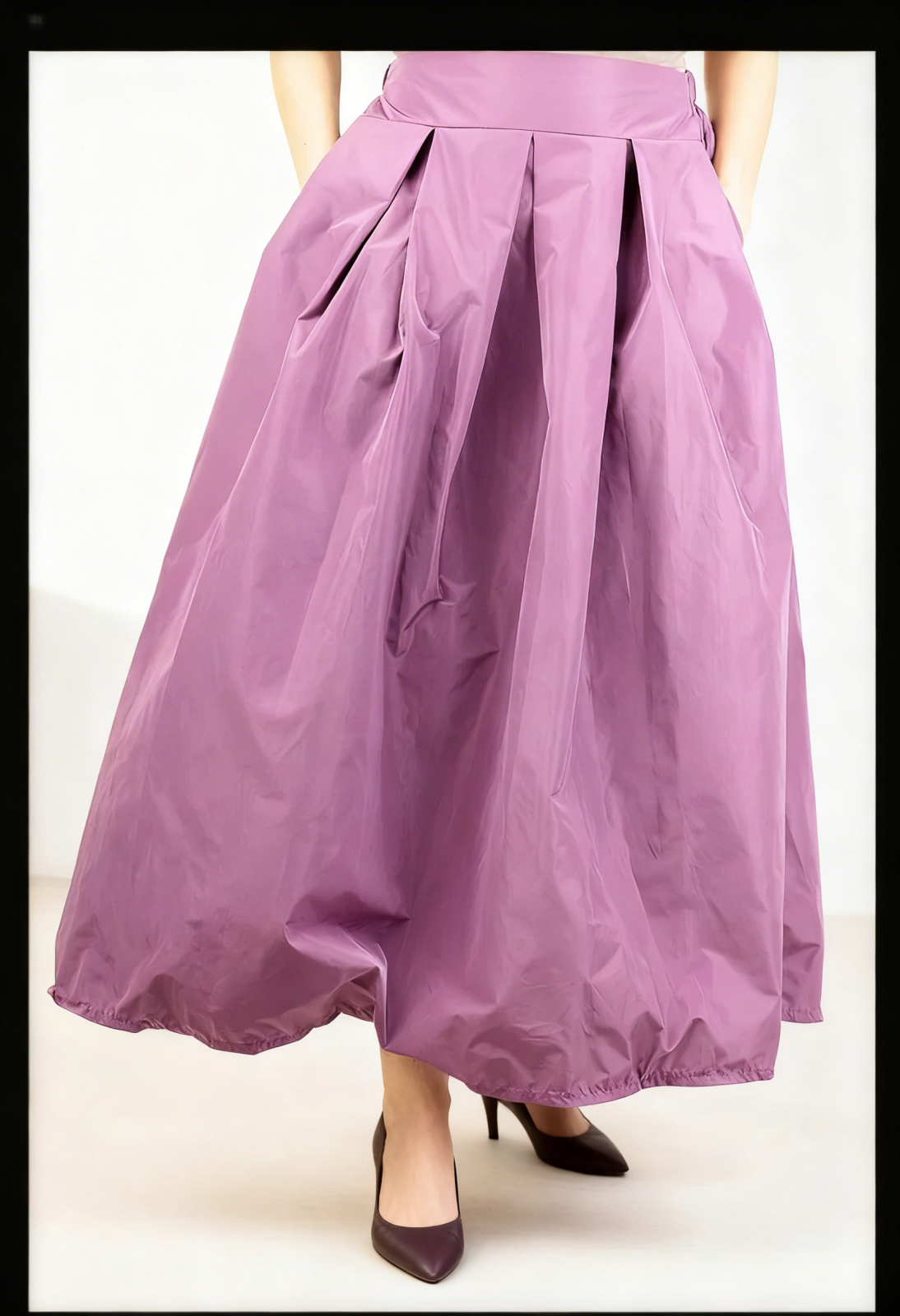 Fusta mov liliac, maxi, ampla din tafta Talie unica