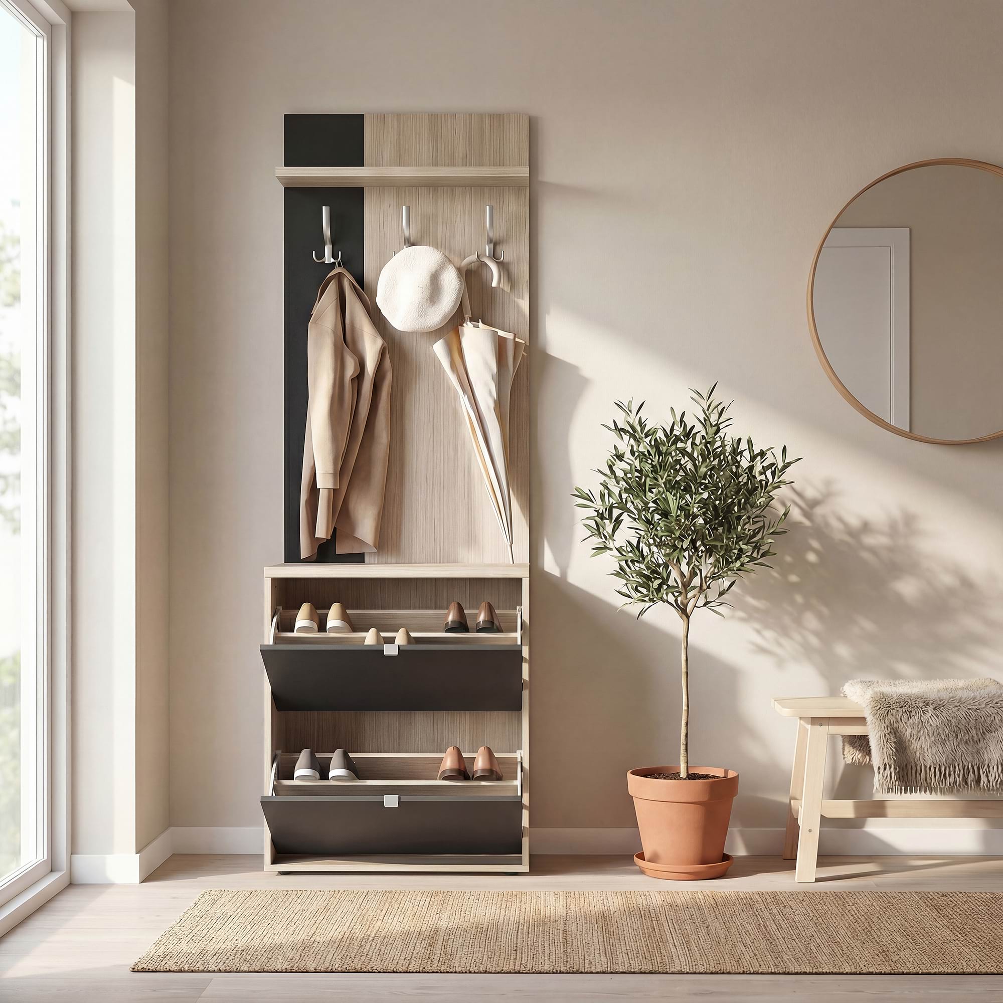 Cuier Hol RIVA cu pantofar 2 usi, Oak, Antracit