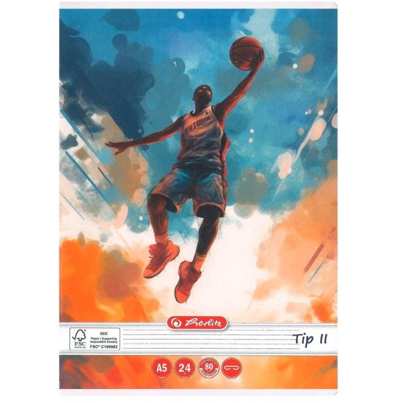Caiet A5, 24 File, 80 g / mp, Hartie FSC MIX, Tip II, Colturi Rotunjite, Motiv Dinamic