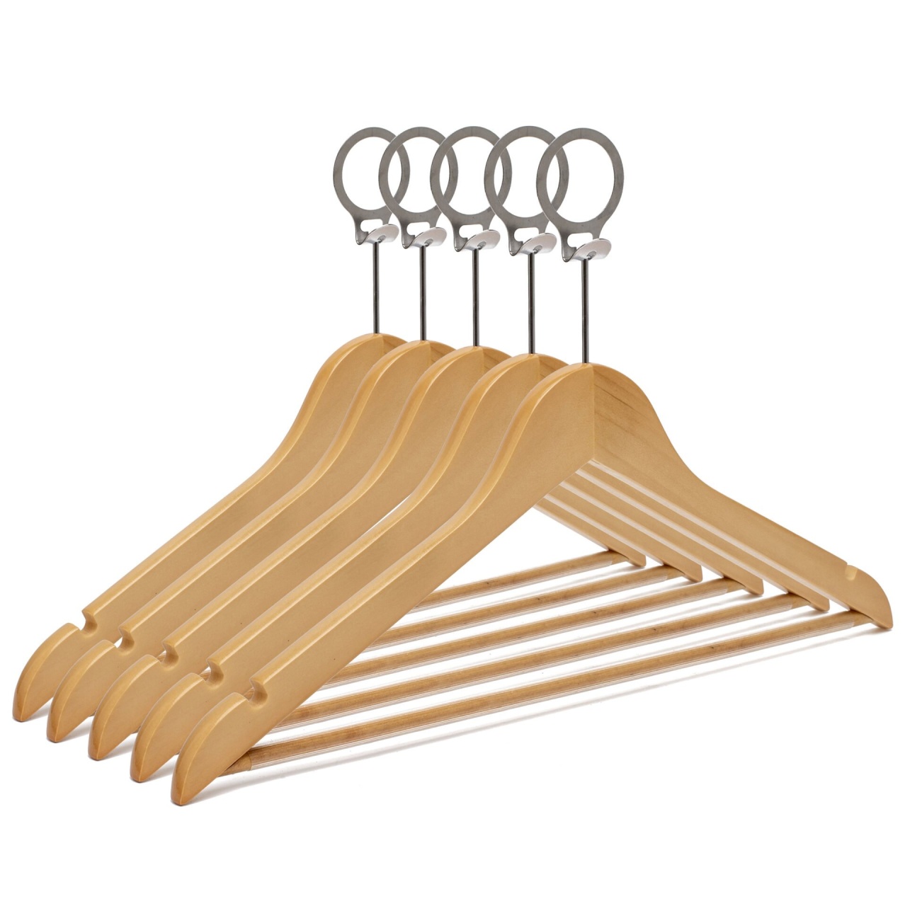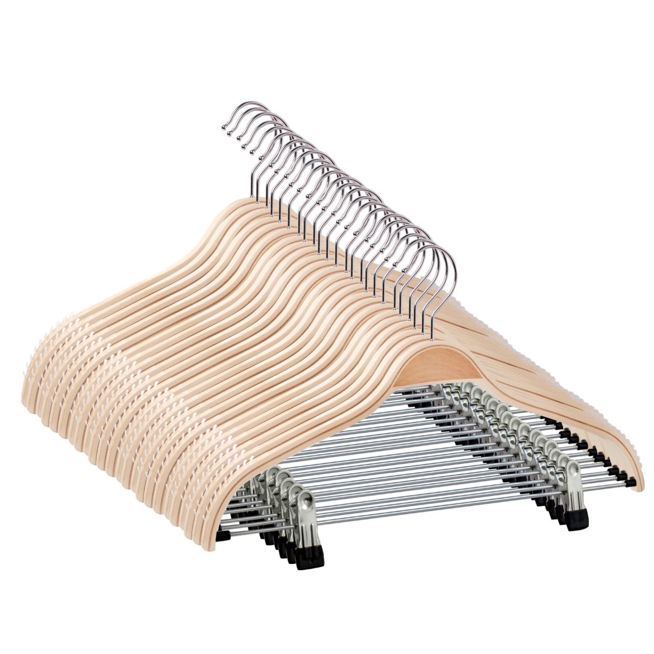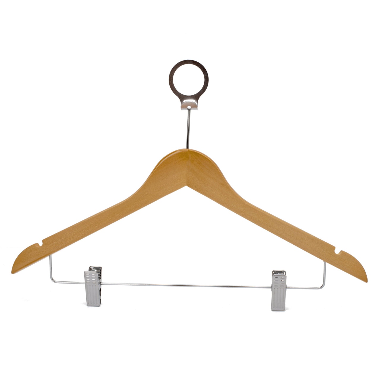 Umeraș Hotel din lemn cu cârlig antifurt și clipsuri metalice, Natur, 1 bucata