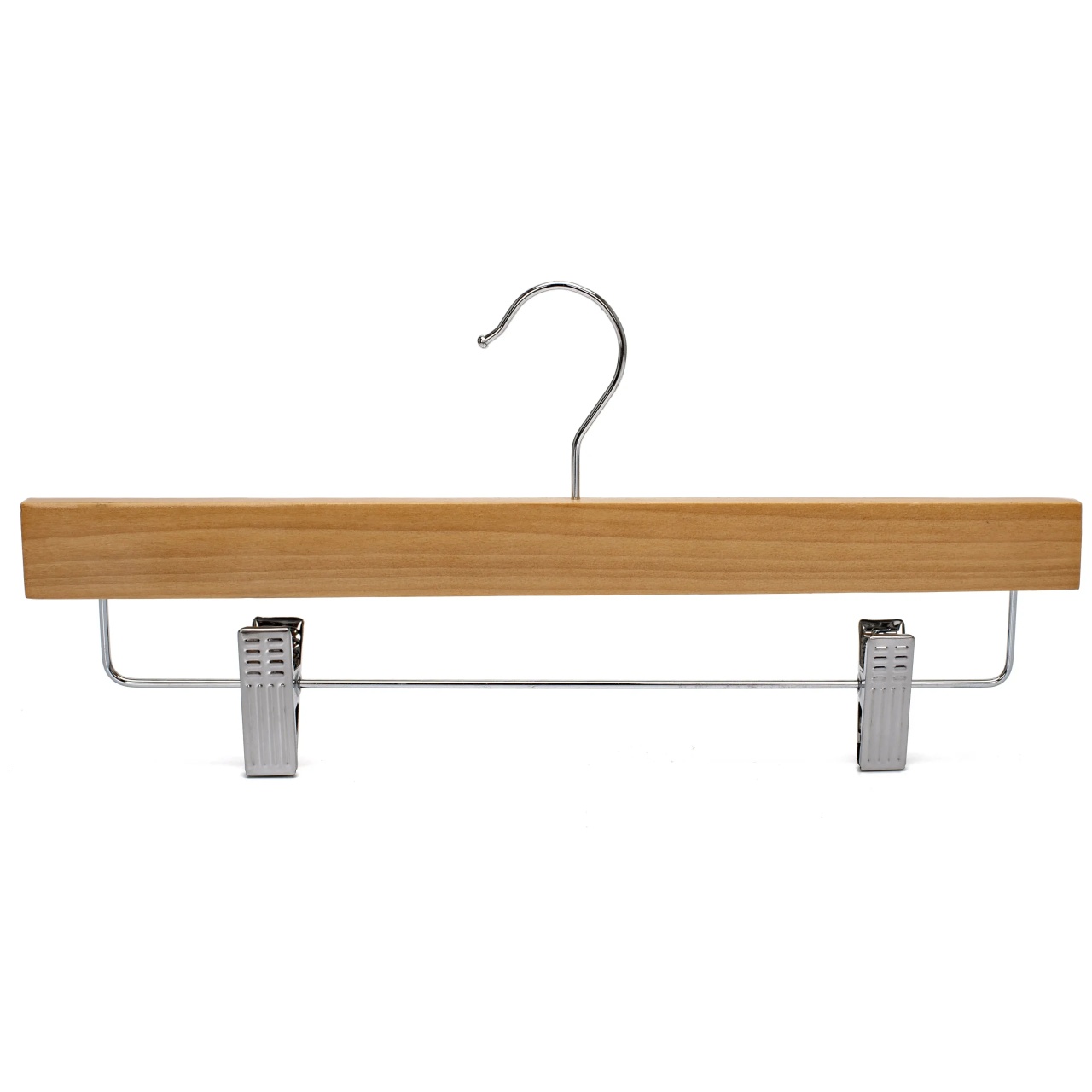 Umeraș din lemn cu clipsuri metalice, pentru pantaloni, Natur, 1 bucata