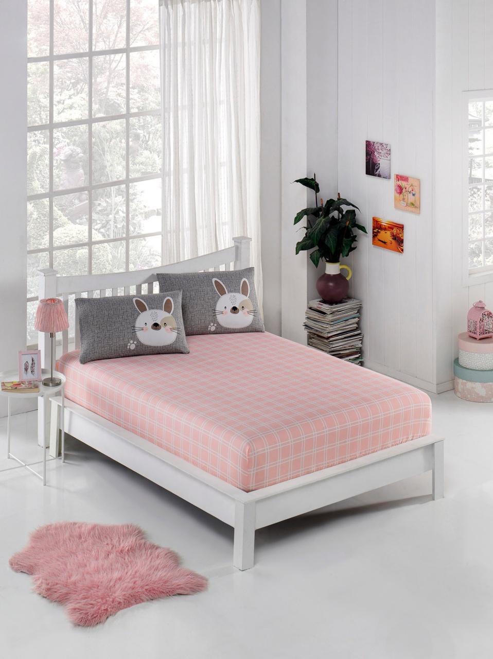 Cearsaf cu elastic si fete de perna Model Tavşancık