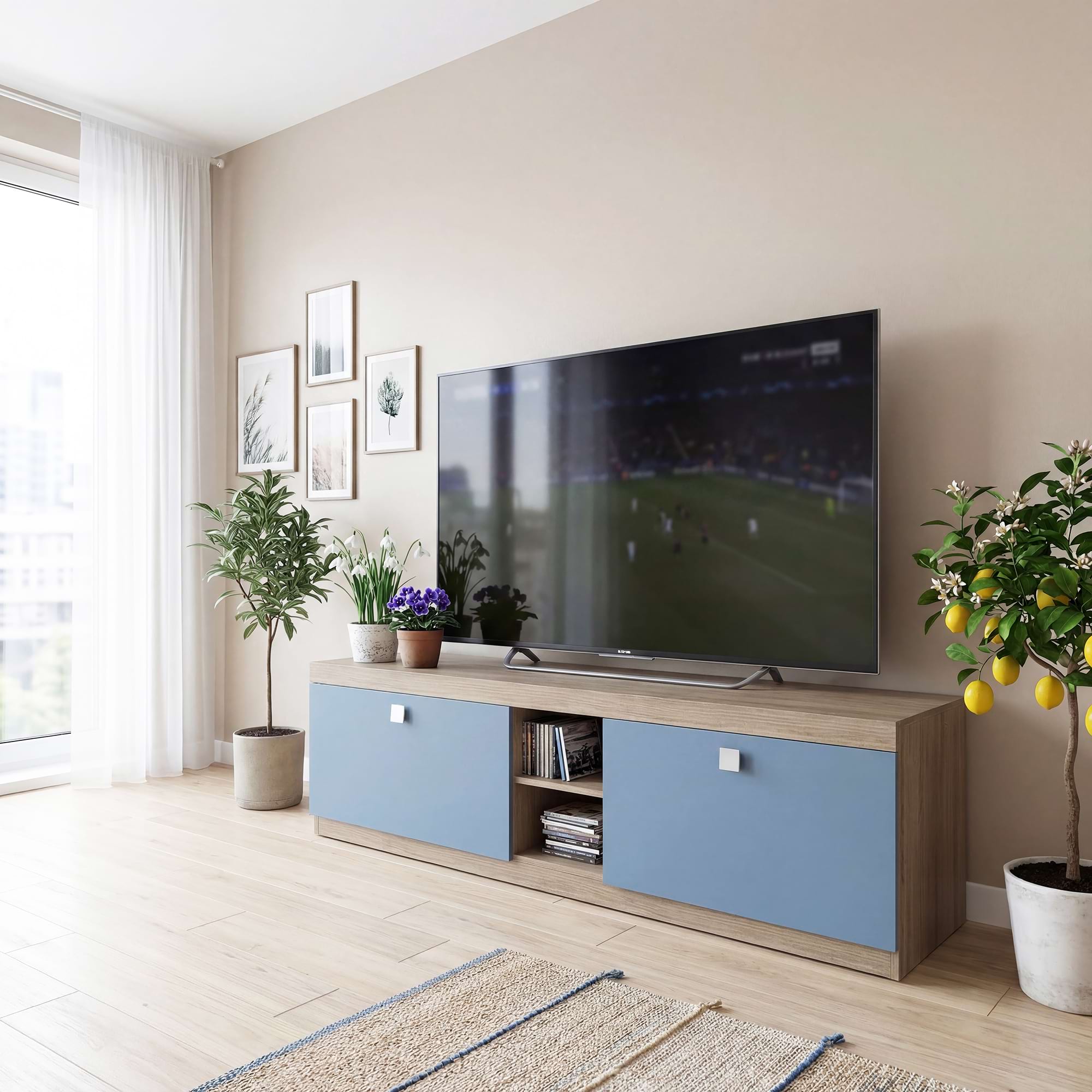 Comoda living LINEA 160, Oak, Albastru Denim