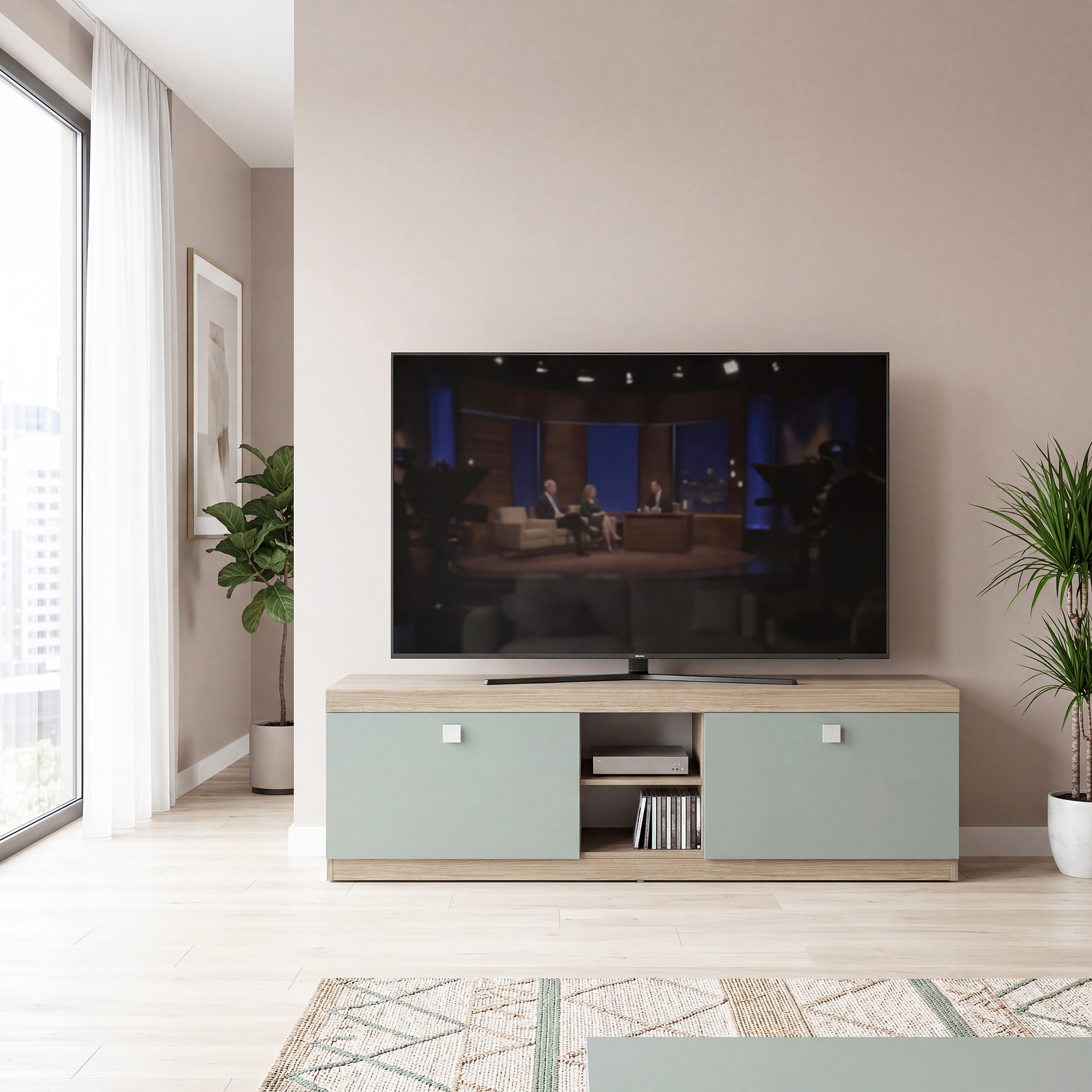 Comoda living LINEA 160, Oak, Verde Eucalipt