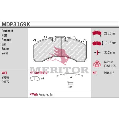 set placute frana,frana disc MERITOR MDP3169K